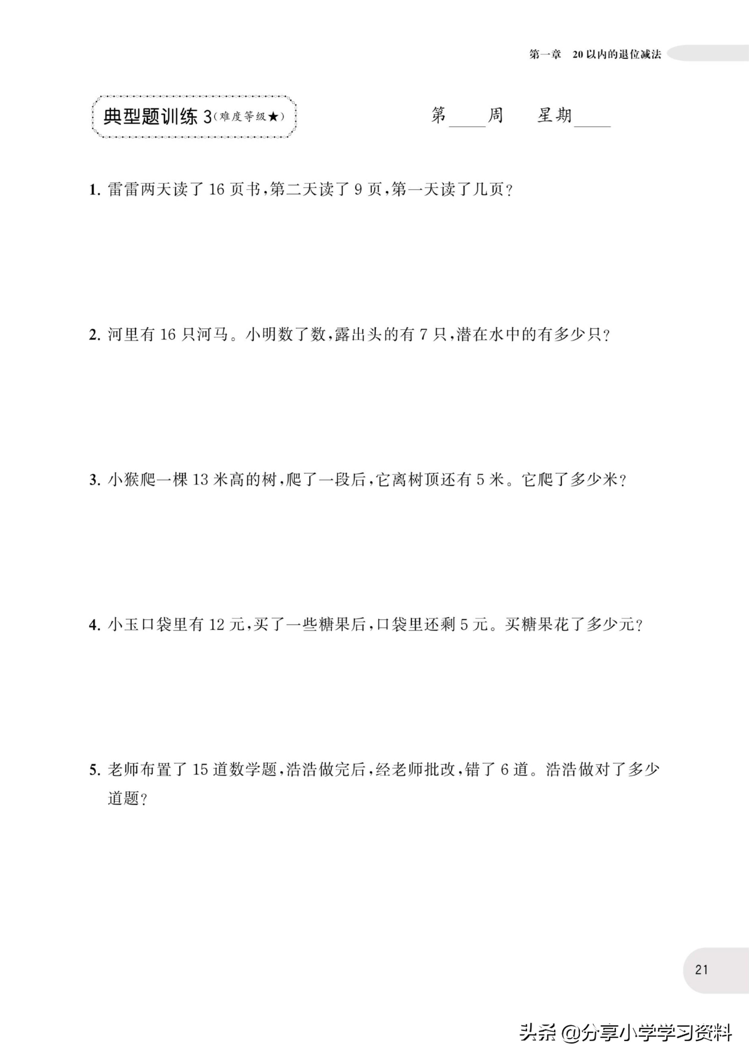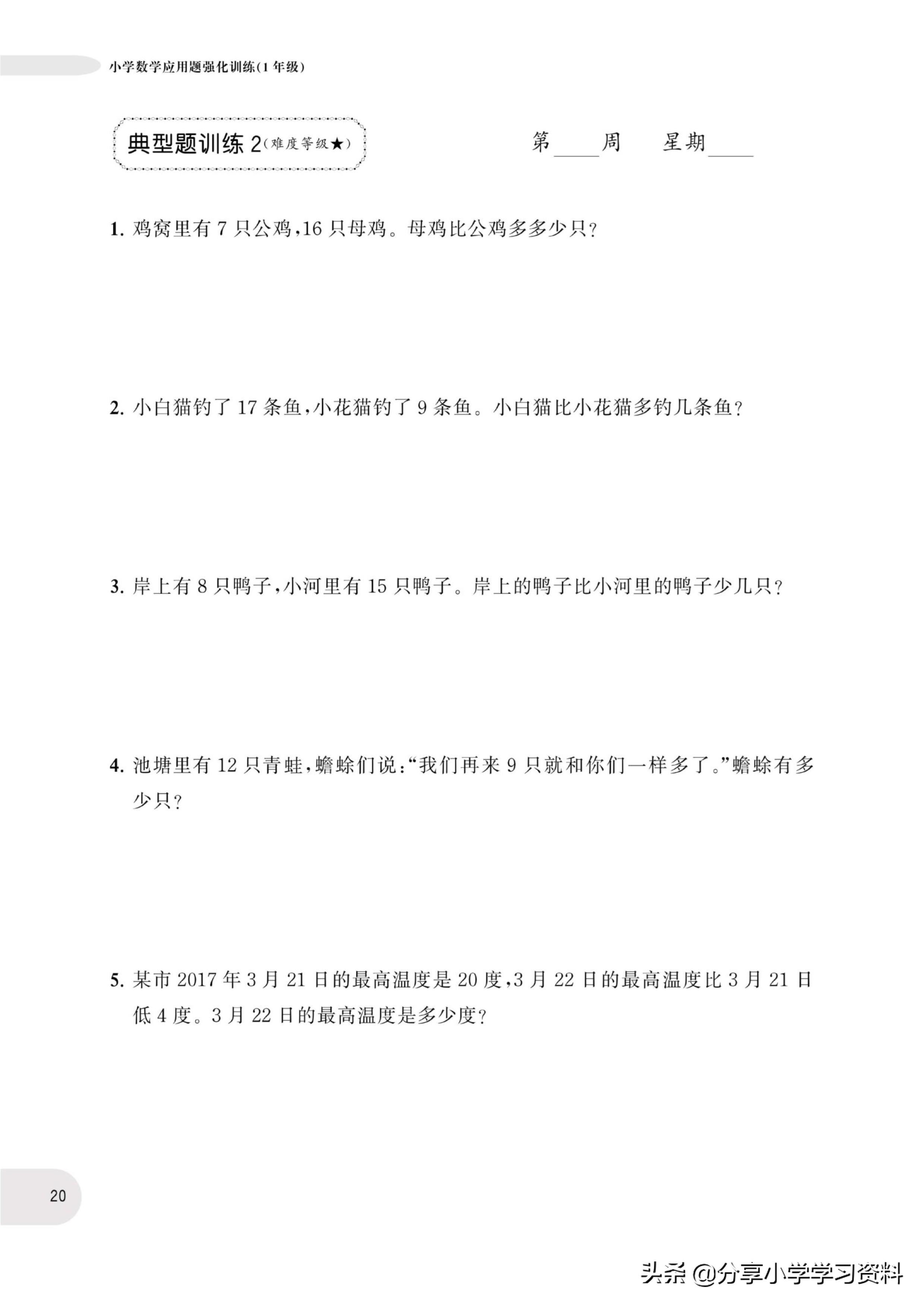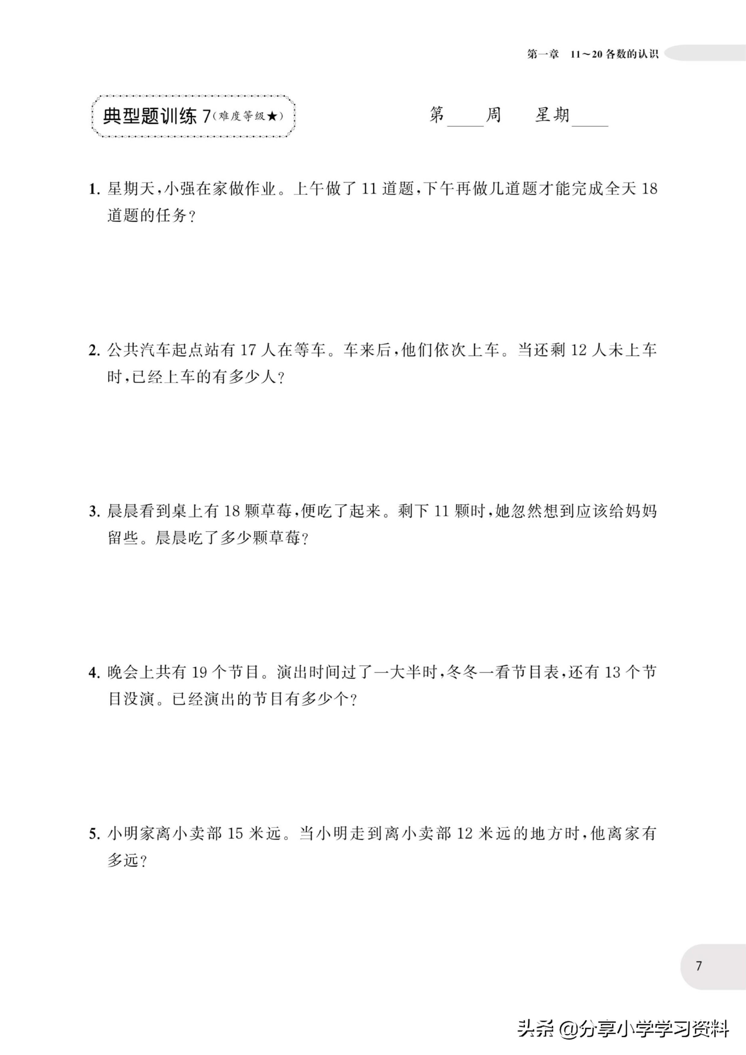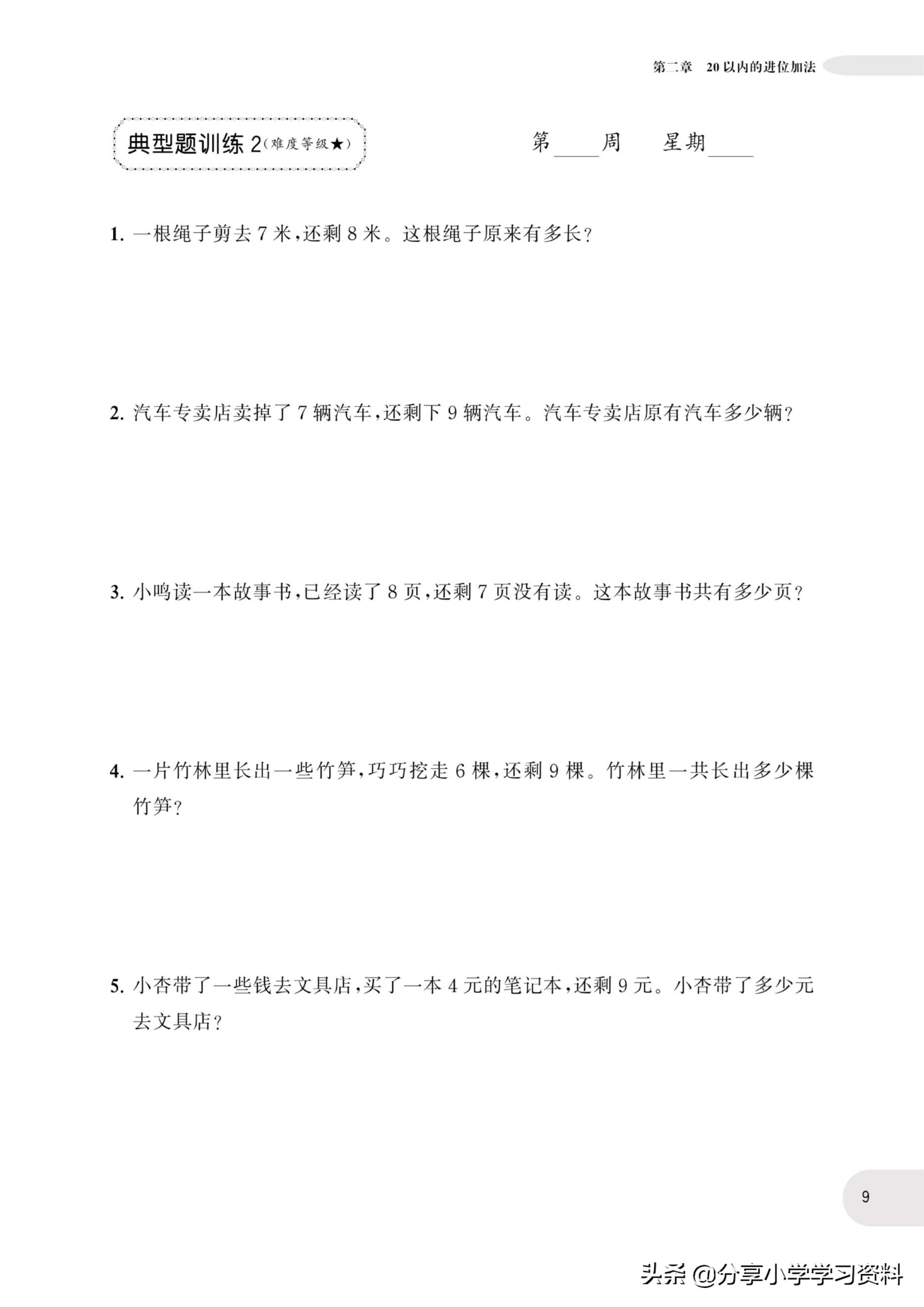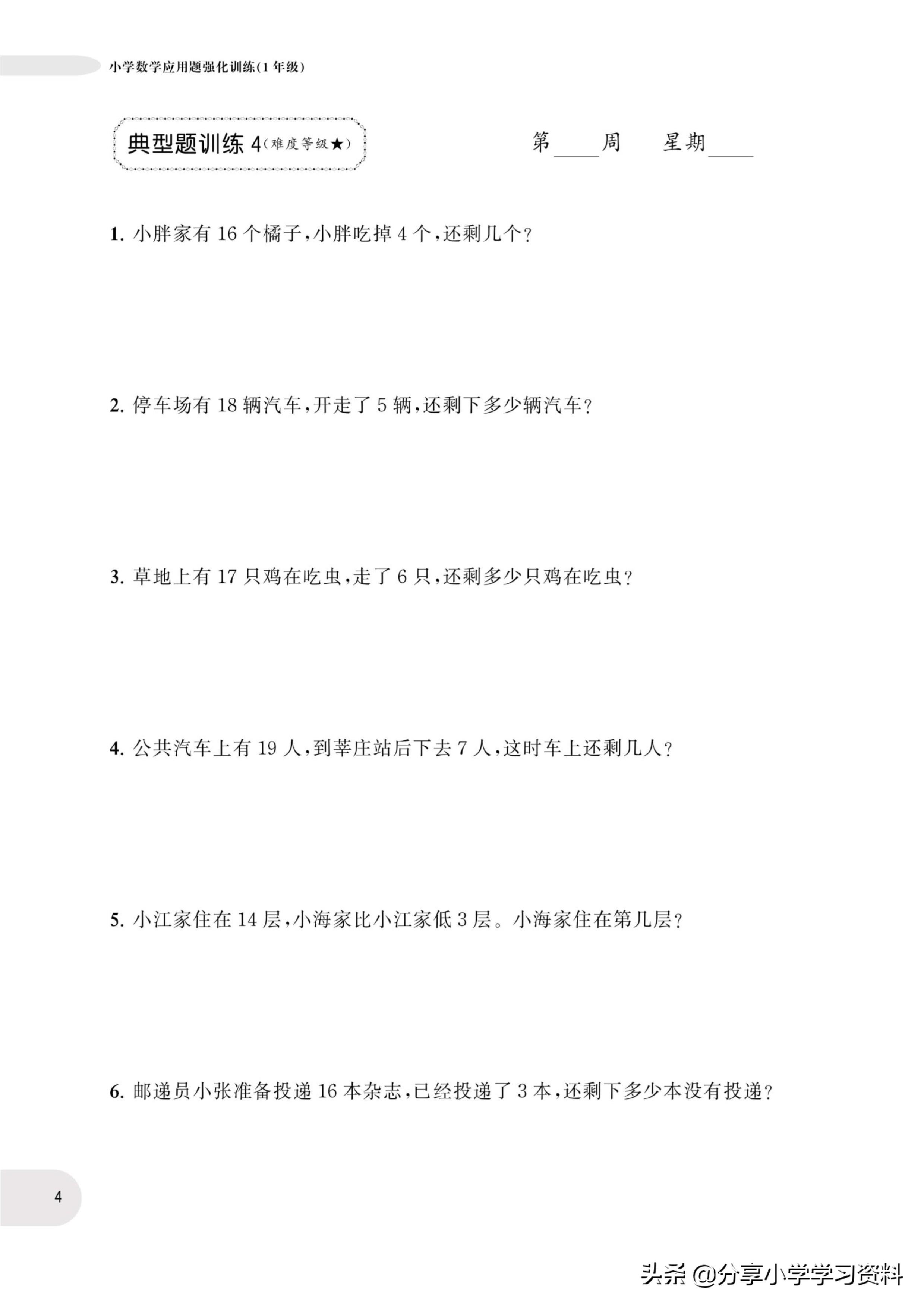 小学数学1年级上册应用题强化训练(有电子档)附答案