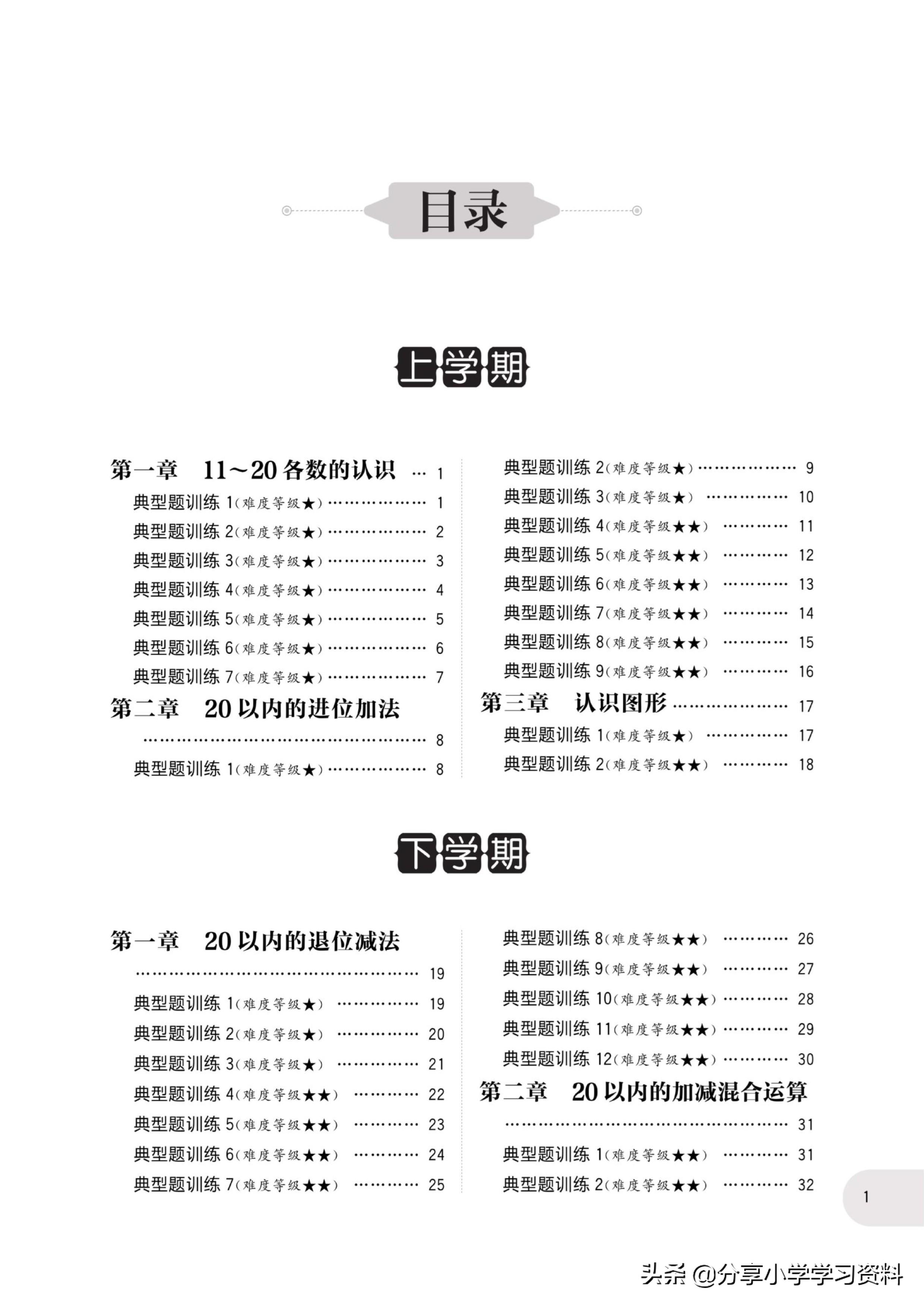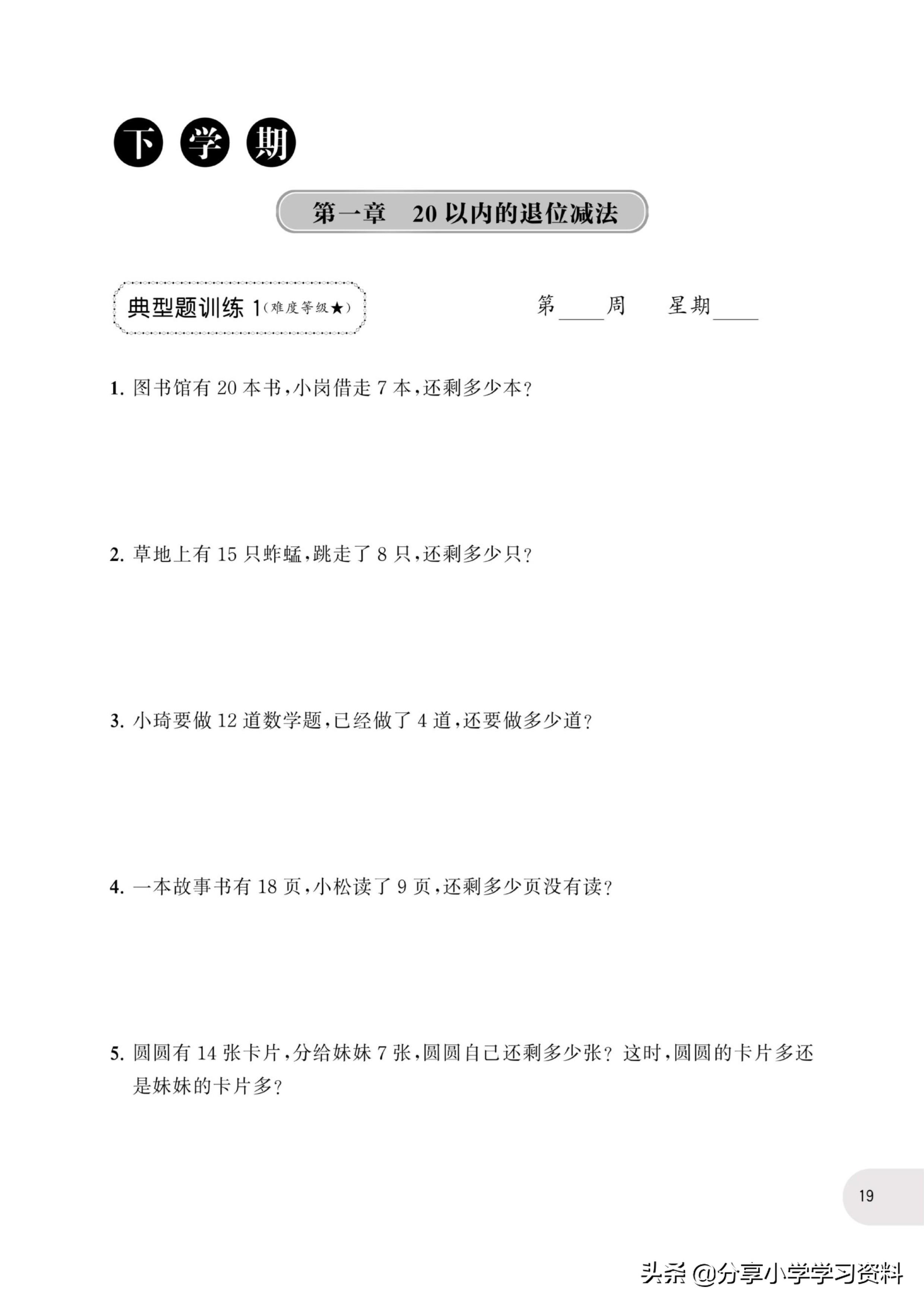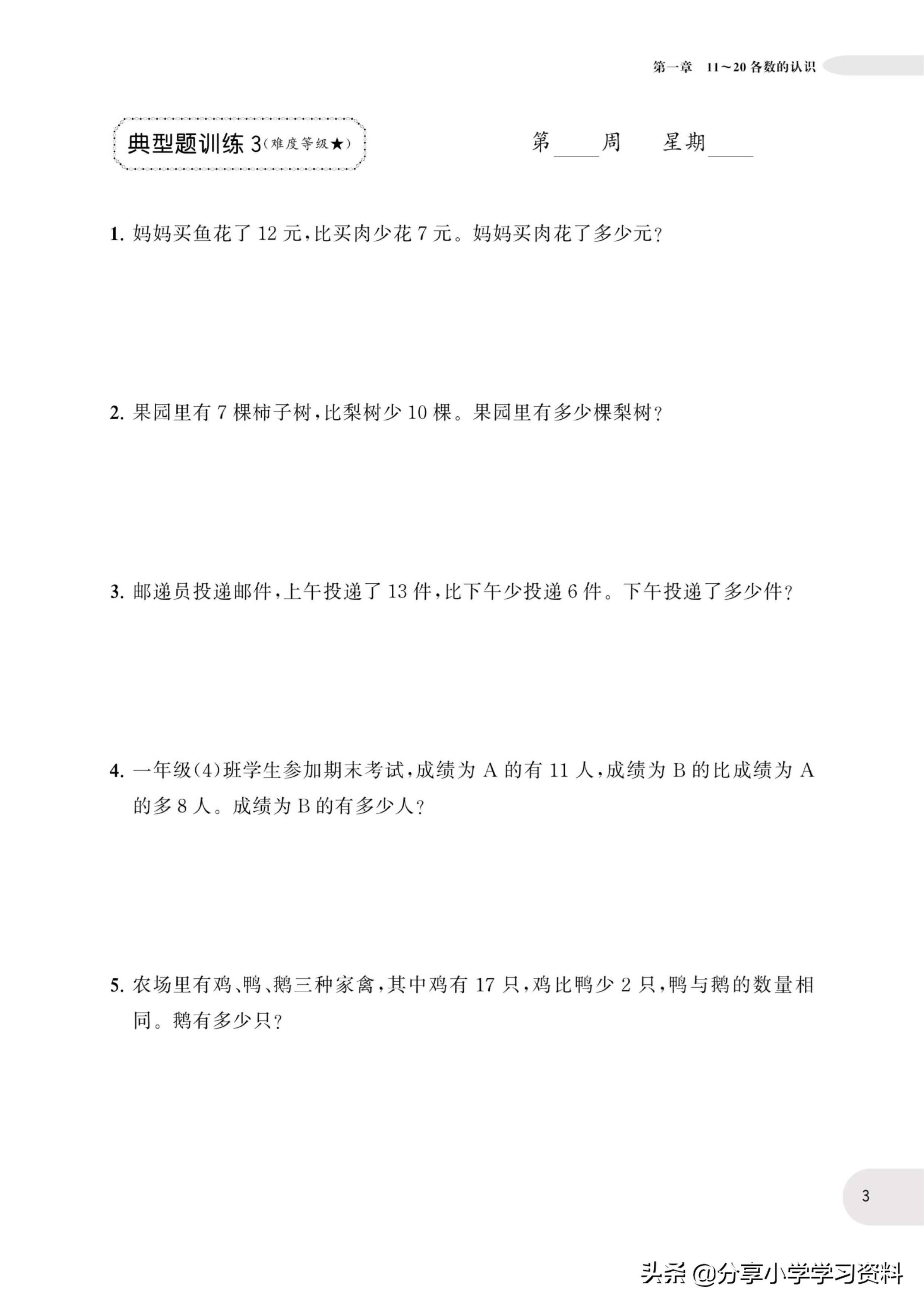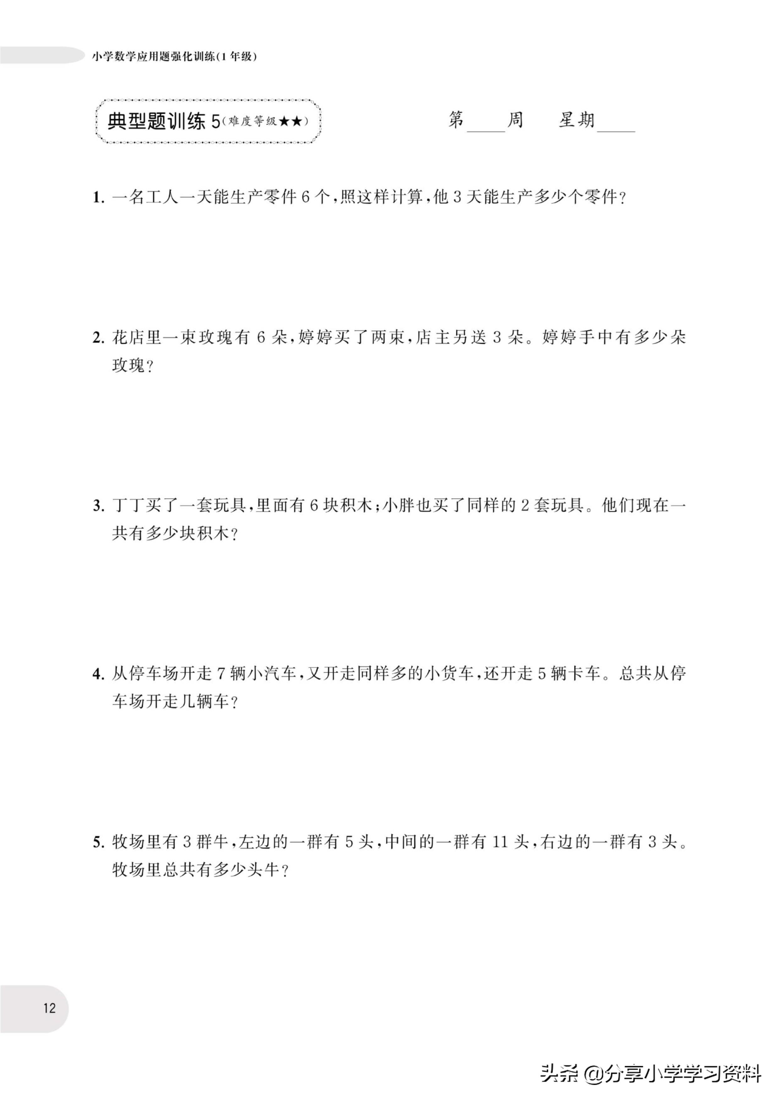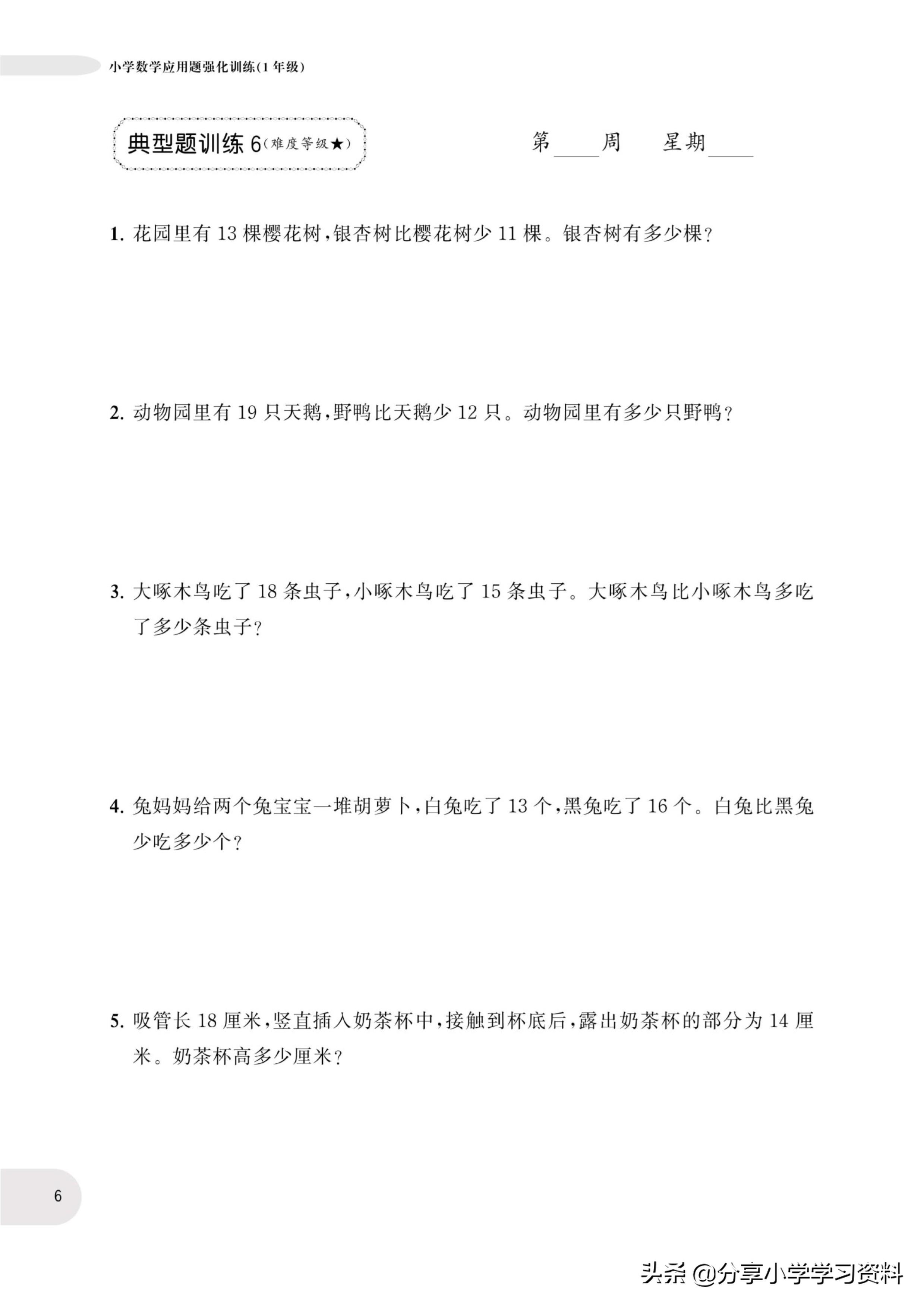 小学数学1年级上册应用题强化训练(有电子档)附答案