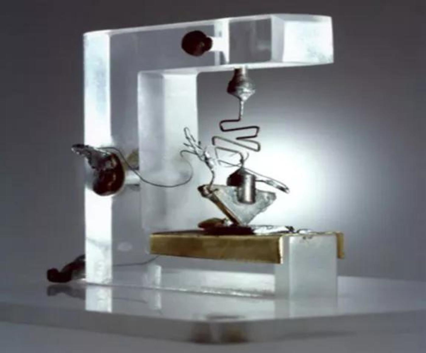 (贝尔实验室诞生的第一个锗半导体点接触式晶体管)