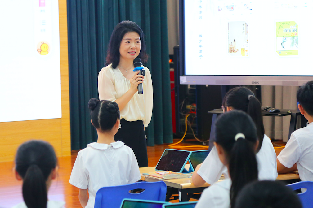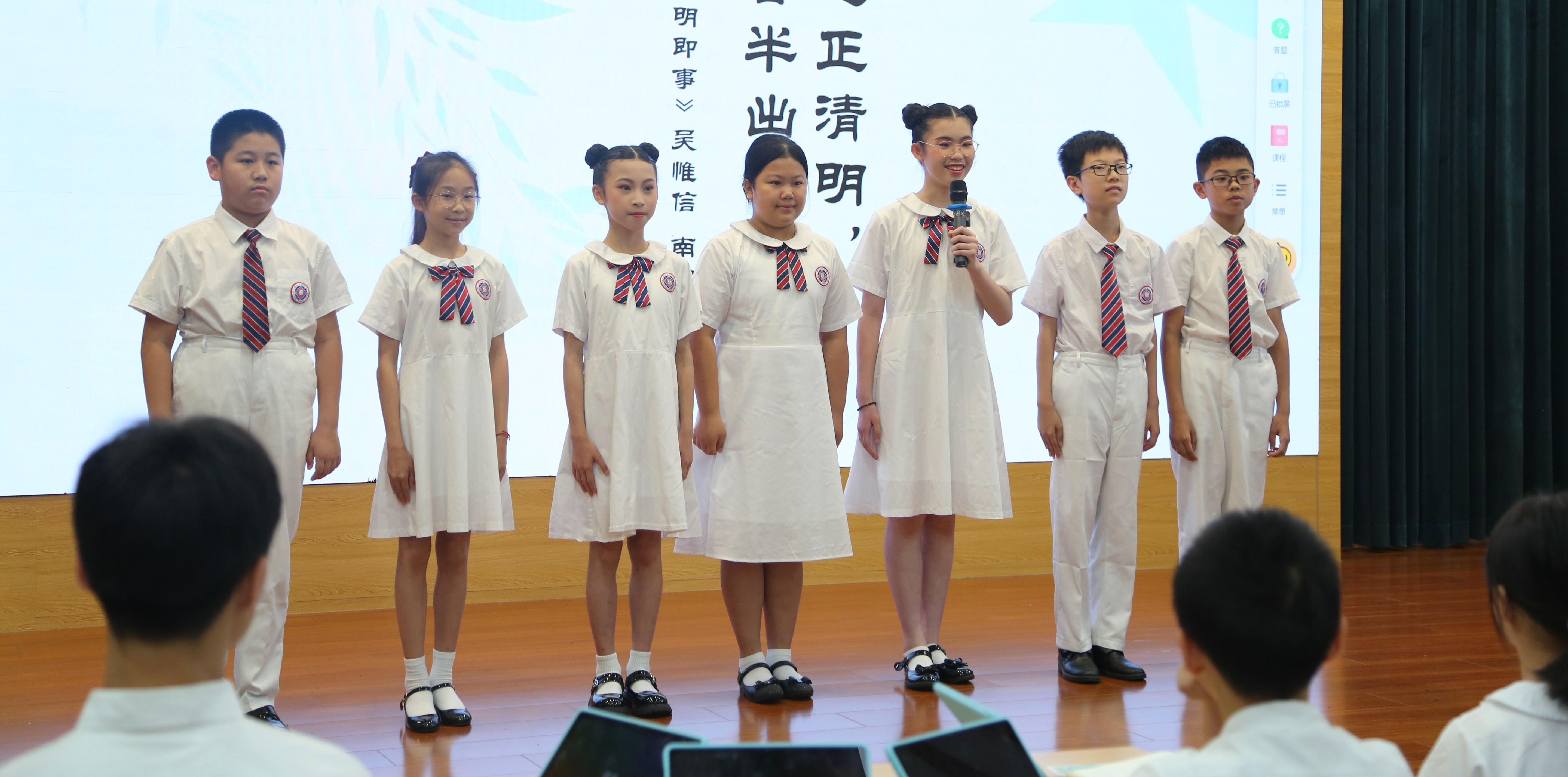 在教学课例展示中,广州市越秀区东山培正小学陈蓉老师展示的《清明节诗词文化学习之旅》以任务为驱动,先让学生个性化阅读,再进行深入探究,归纳古诗词中的文化意涵和民族品格,让学生在古诗词的阅读中了解文化、热爱文化、认同文化,有效达到培育学生文化自信心的目标。