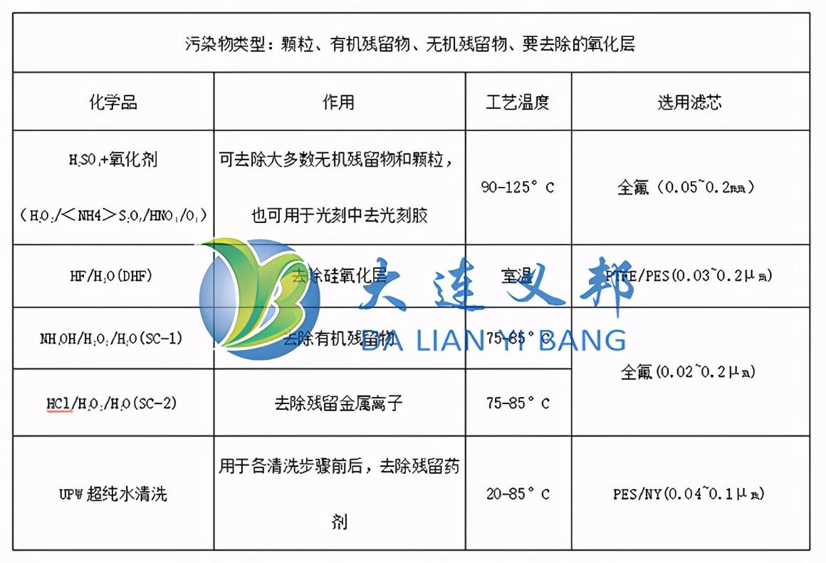 在过滤半导体制造用的刻蚀液、剥离液以及液晶电视用的液晶原料时,对滤芯的耐腐蚀及溶出物的要求非常严格,由于全氟滤芯耐腐蚀及耐溶出性优良,对过滤介质要求严格的电子信息材料和具有腐蚀药液等过滤制作行业精准适用。下面是不同污染物选择对应化学品和滤芯的实际应用案例分享。