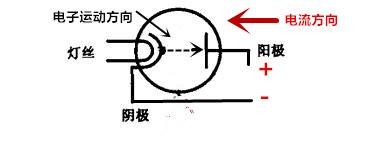 二极电子管结构:阳极、阴极、灯丝、真空管组成,也叫真空二极电子管,是最先被发明的。灯丝的作用是加热阴极,使其内部热运动增强,阴极是由金属组成,我们知道金属内的自由电子的运动受温度影响较大,当温度增加时会有自由电子从其表面逸出,这就叫做电子的热发射,不同金属的热发射电子的能力不同,我们在阴极上涂抹容易发射电子的物质。当中阳极施加正电压后,就会在阳极、阴极之间形成电场,电场方向由阳极指向阴极,阴极逸出的电子就会在电场力的作用下向阳极运动,这样就形成了电流,电流方向由阳极指向阴极,与自由电子运动方向相反。当在阳极施加负电荷后,会阻挡电子的运动,这样就不会形成电流,这就是二极电子管的工作原理,它有很好的单向导电性,这一点上比晶体二极管要强,但其可以通过的电流较小,阳极电压较高。用它的这个特性可以用来整流,为了发挥其整流效果,人们将阳极做成两个这样就可以组成双二极管,共用一个阴极,可以用来做全波整流。