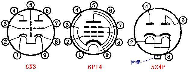 具有定位键的电子管:首先把管底向上,然后以定位键左方的第一个为1脚,其余的依次按顺时钟方向确定即可。