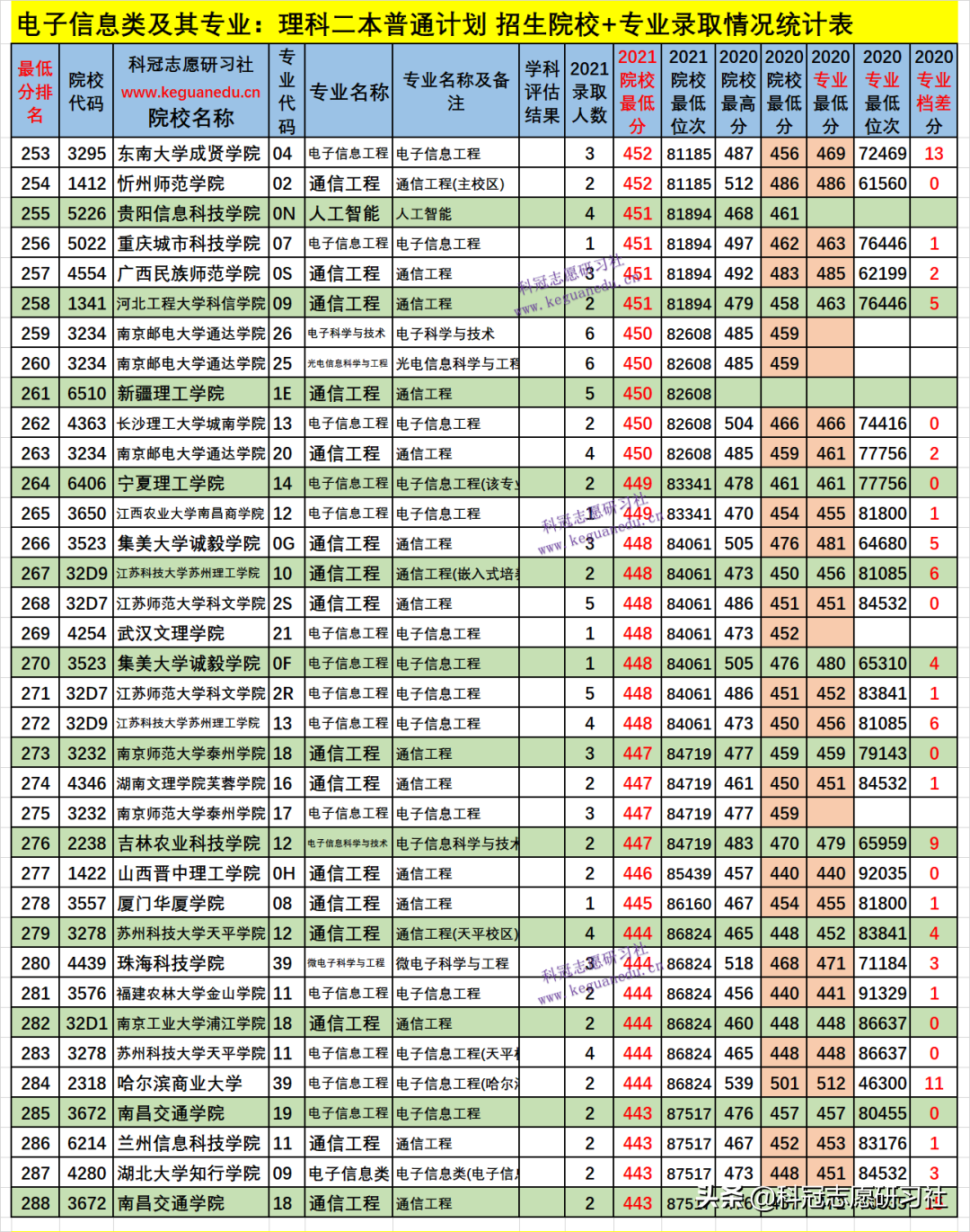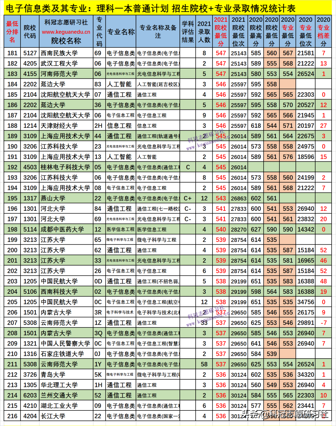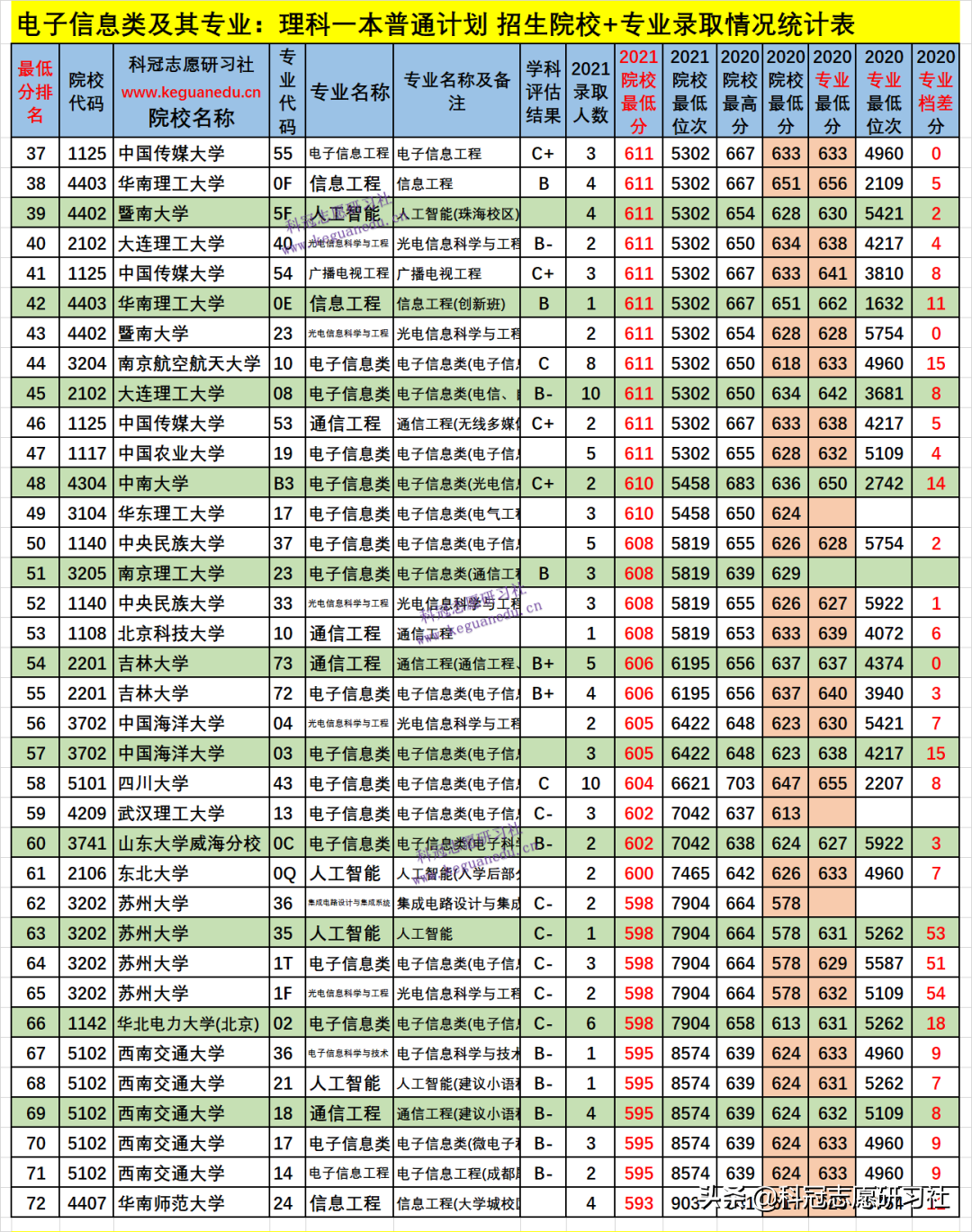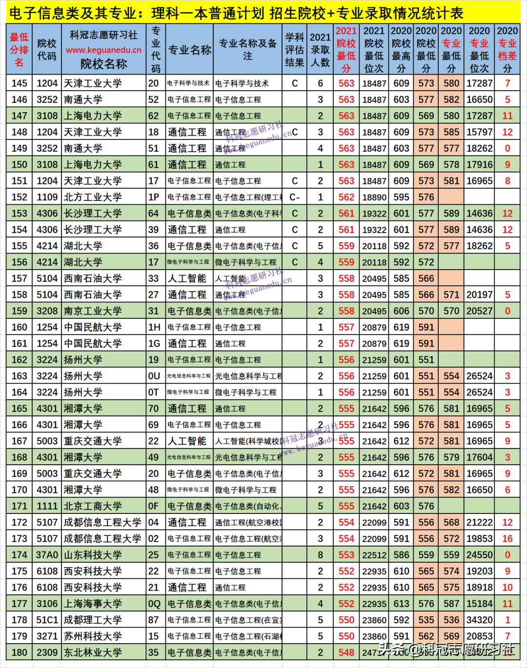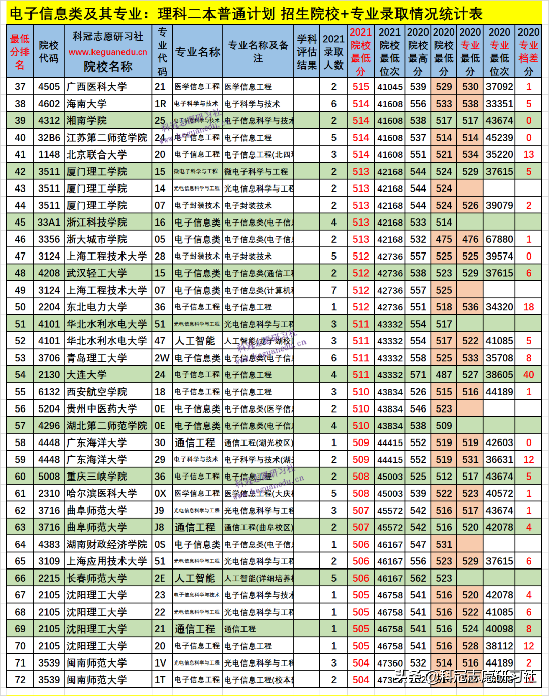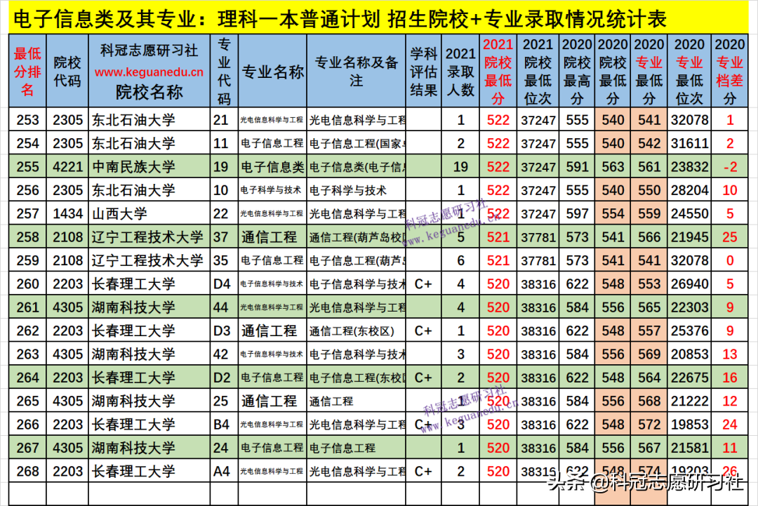 四、电子信息类及其专业2021年招生院校、专业录取分析