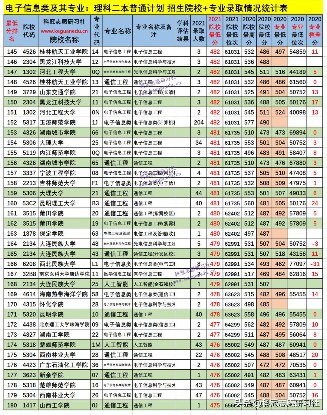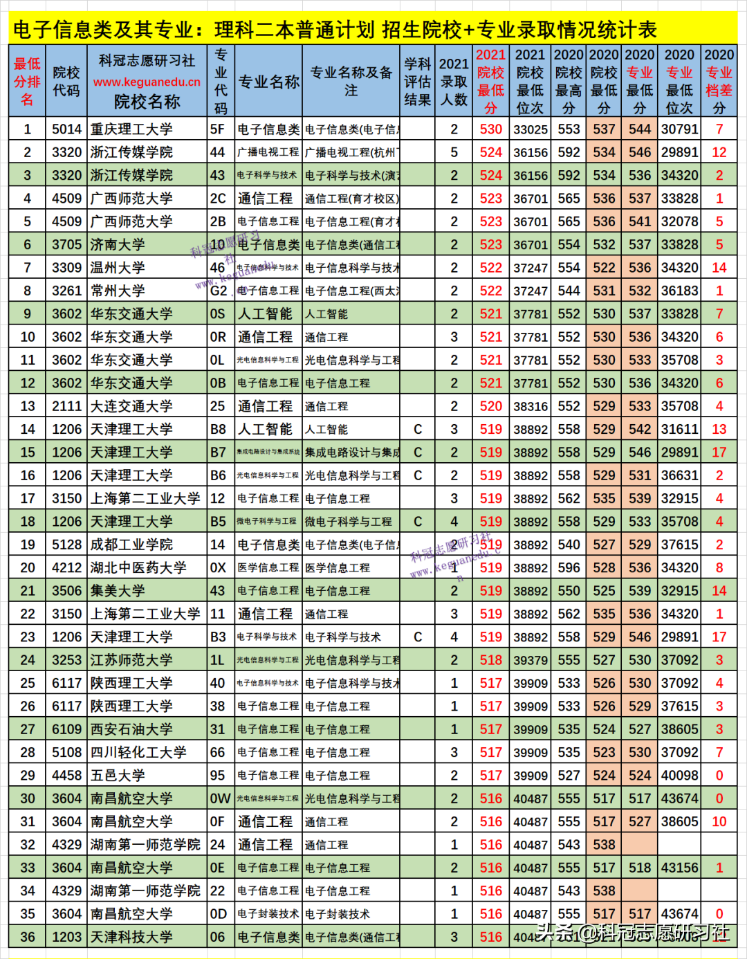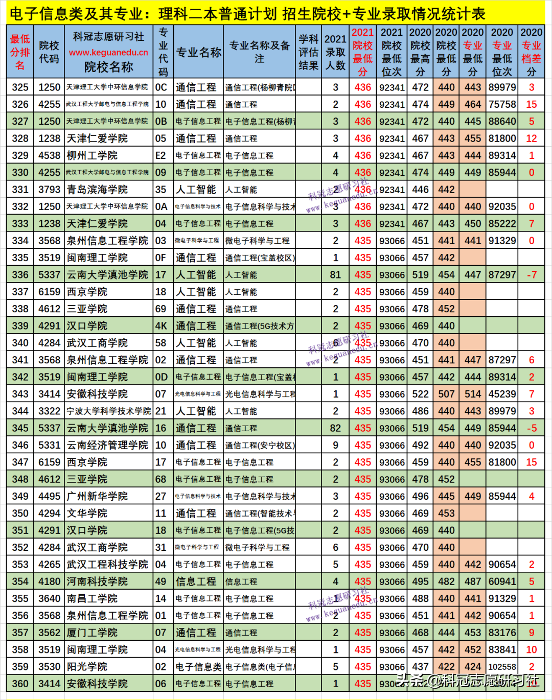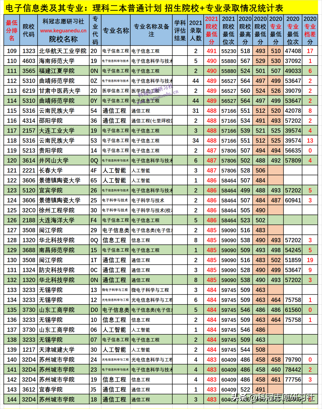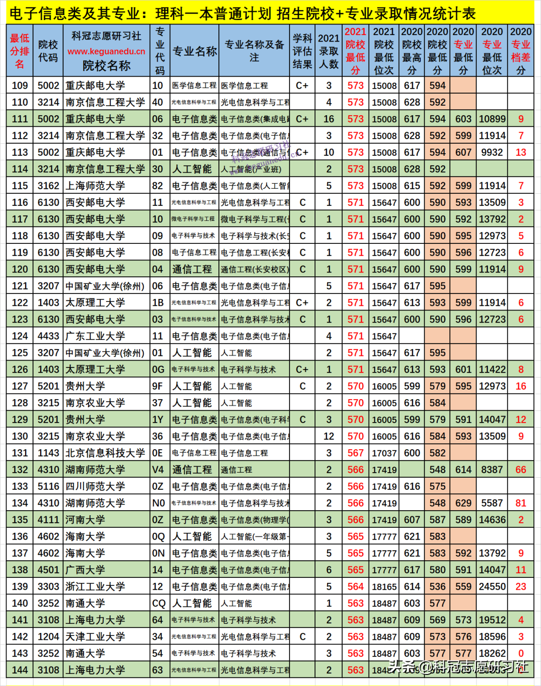 四、电子信息类及其专业2021年招生院校、专业录取分析