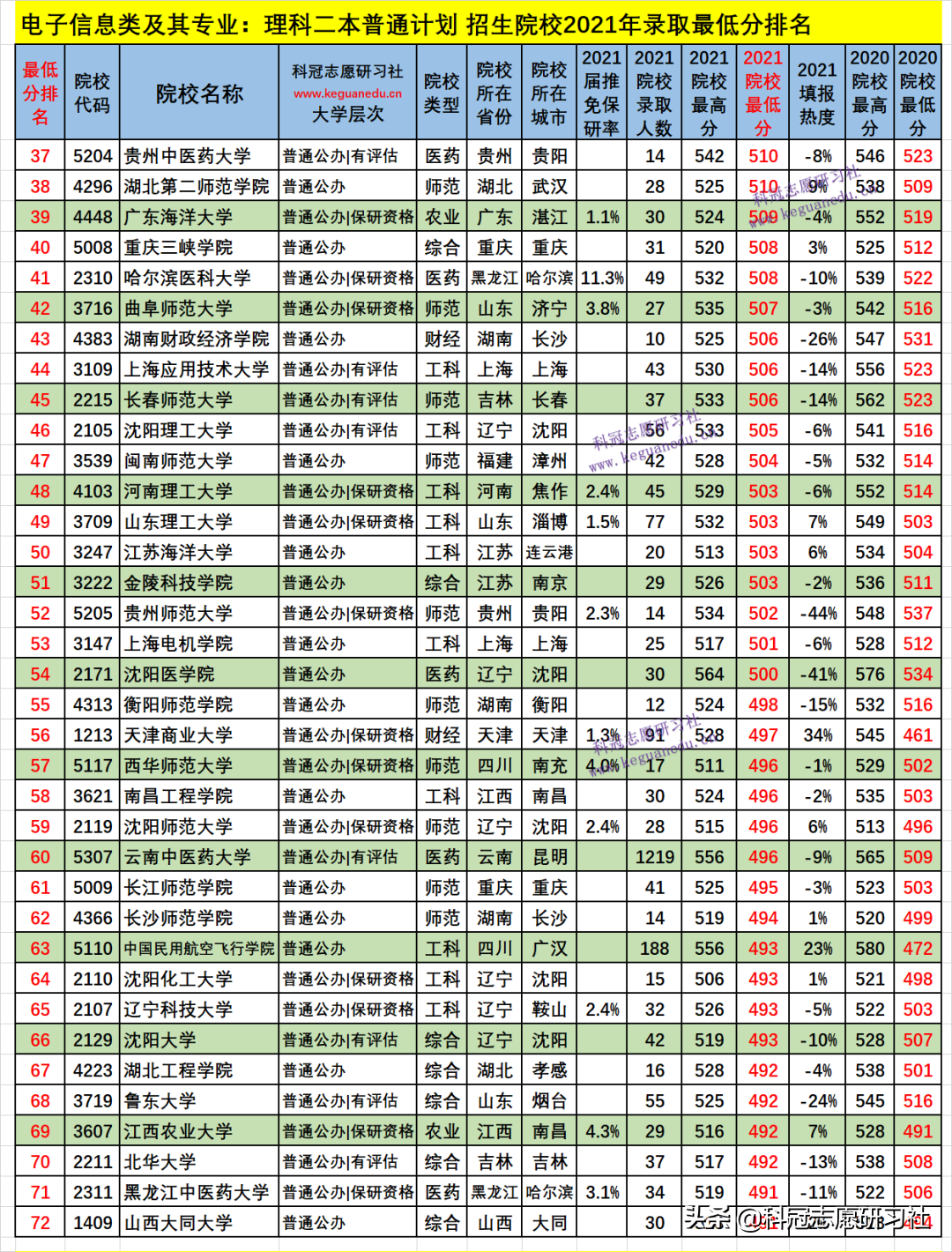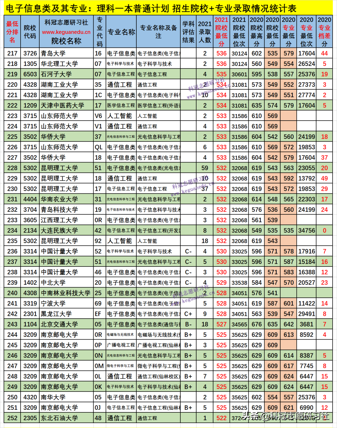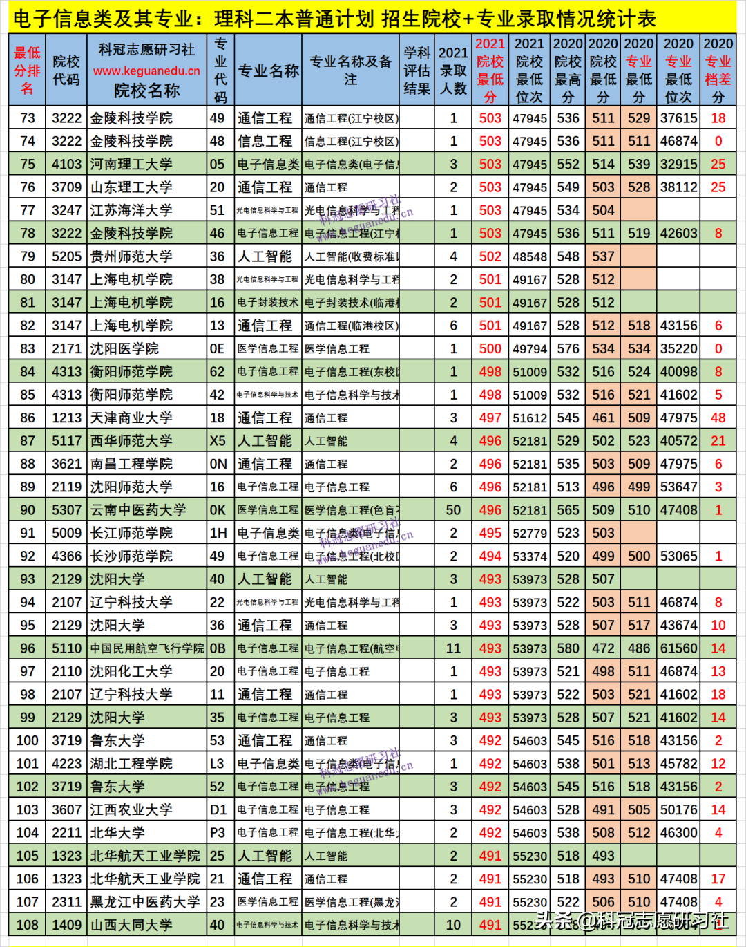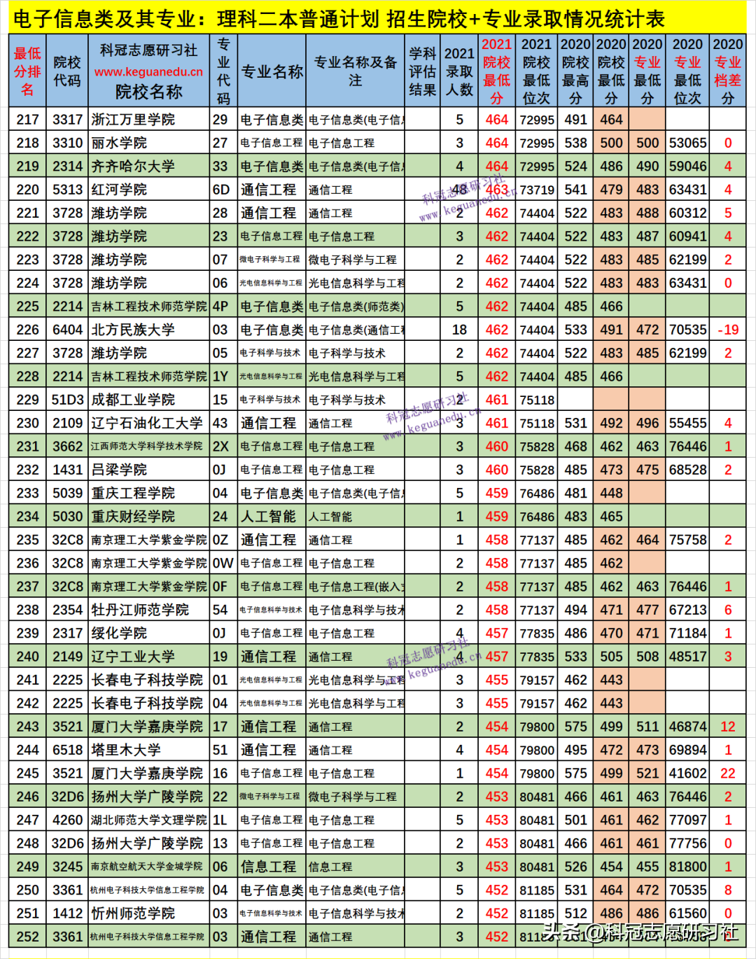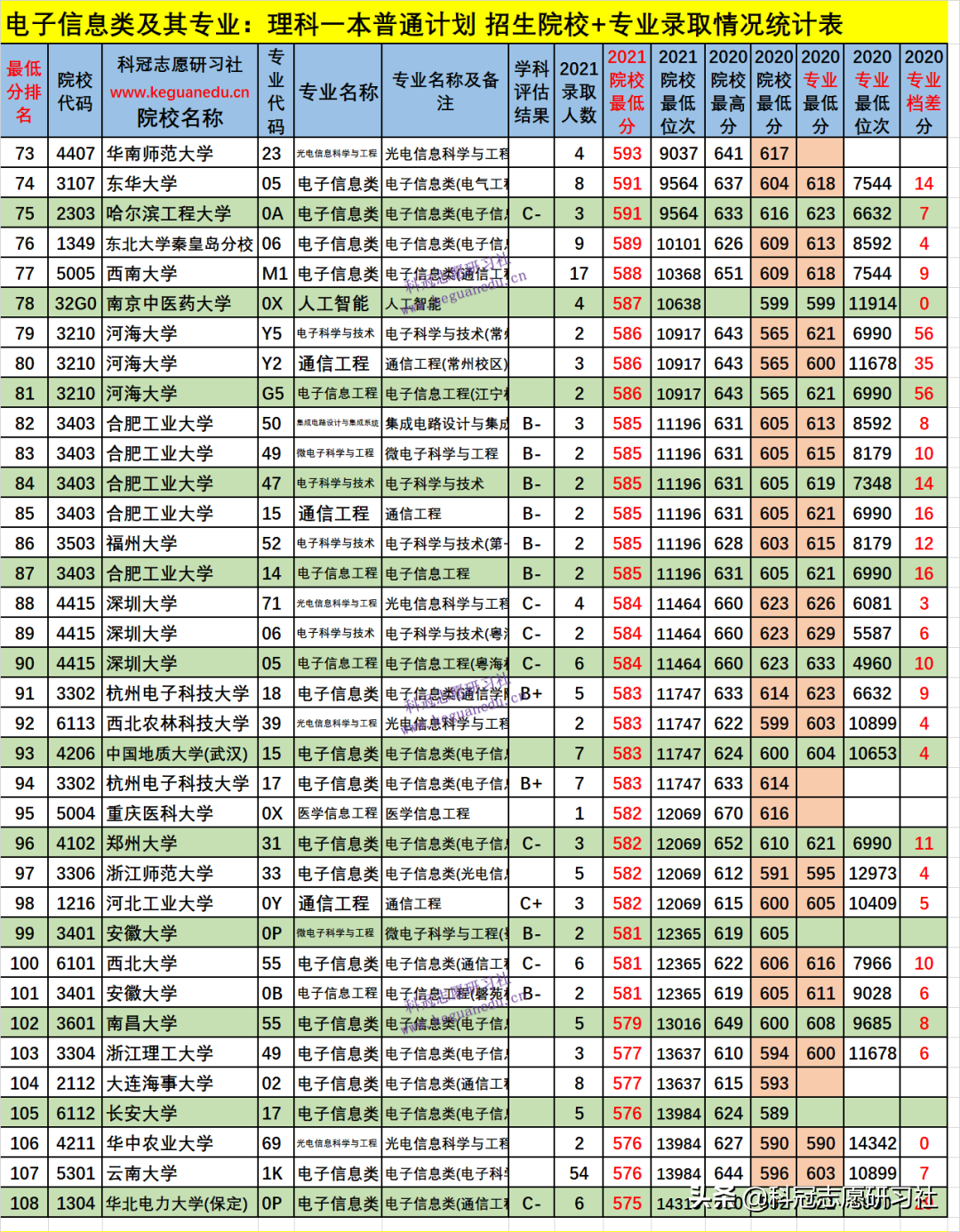 四、电子信息类及其专业2021年招生院校、专业录取分析