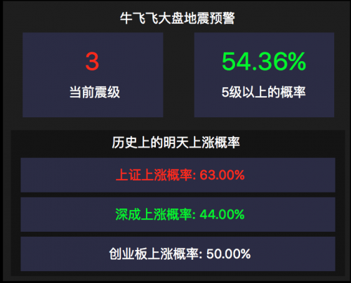 牛飞飞是一个机器人,你用牛菲特,等于雇用了一个投资专家。牛飞飞会在开盘时盯盘,她会综合了上证、深成、创业板以及外围数据,实时给出的一个盘面预警,震级也很好理解,等同于真实的地震,五级以上会有伤害。