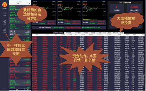 自选股群组是个惊喜,这是小编使用过的最顺手的自选股系统,不仅把牛友最关注的资金、量比、换手率列在条目上,而且提供群组编辑功能,更要命的是,牛菲特同时提供ios和android版本,这样可以随时随地编辑添加自选股了,并且在三个平台自动同步。“自选股面板”和“迷你界面”更是方便牛友灵活地将炒股软件打造成自己心仪的炒股神器。