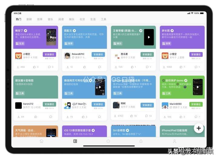 这可能是iOS上最伟大的发明之一!快捷指令可以极大限度简化工作,让原本需要几个App协同的工作,用一条快捷指令就可以全部搞定!但是快捷指令的DIY属性太强了,必须自行制作才行,捷径社区就是提供自制快捷指令分享的App,两者搭配天下无敌: