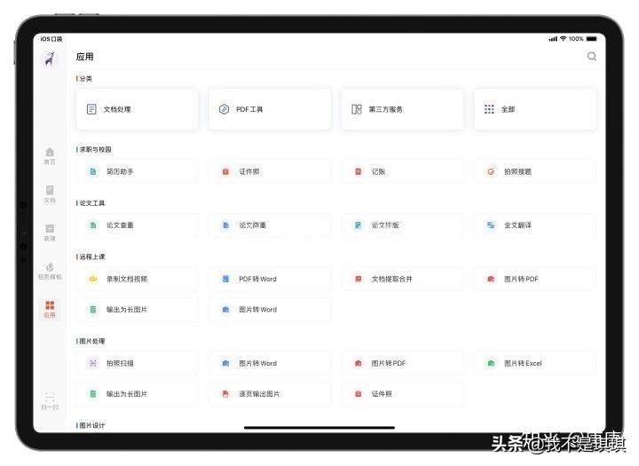 之所以把WPS放在最前面,是因为Office全家桶在10寸以上移动设备是收费的,而且每年价格不菲,如果你已经买了365当我没说,去用office吧!否则WPS是Office最好的替代品:全套office文档的支持、手势操作、全面的工具箱、官方不定期白给体验会员、超快的云端同步、iPad版还没广告