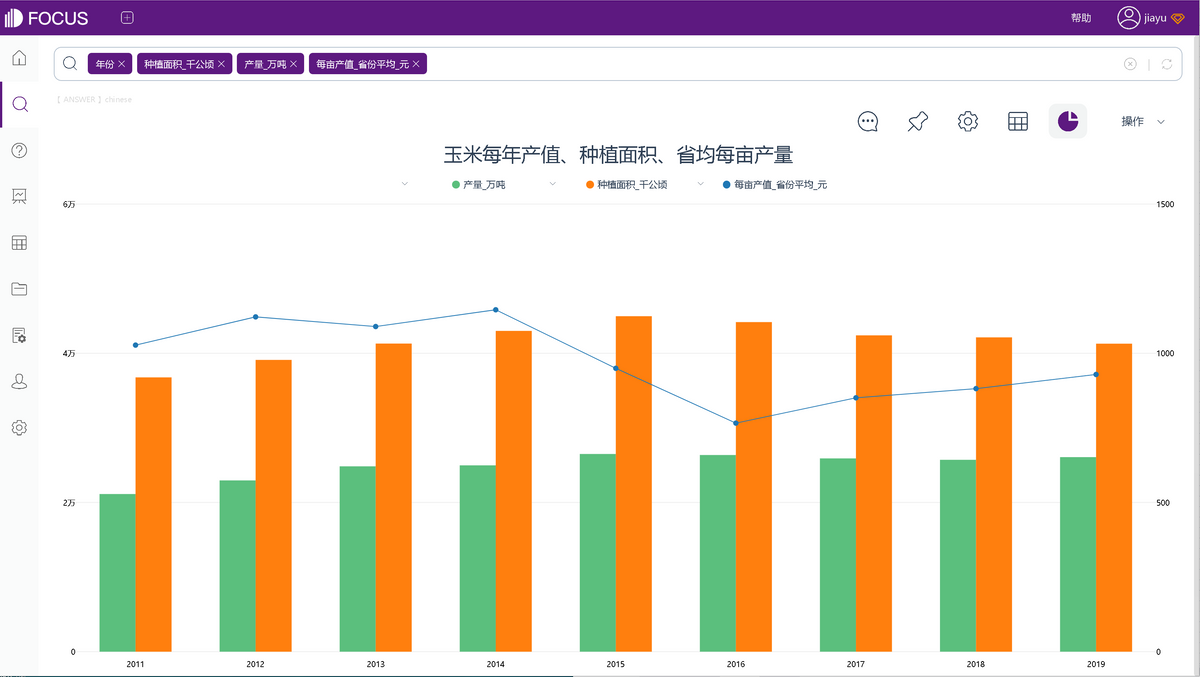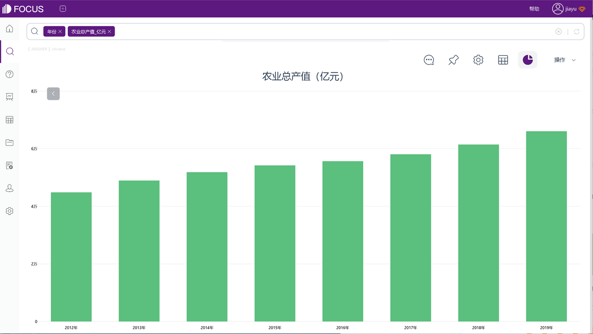 根据国家统计局统计,2019年农业总产值达66066.45亿元。(图形制作:DataFocus)