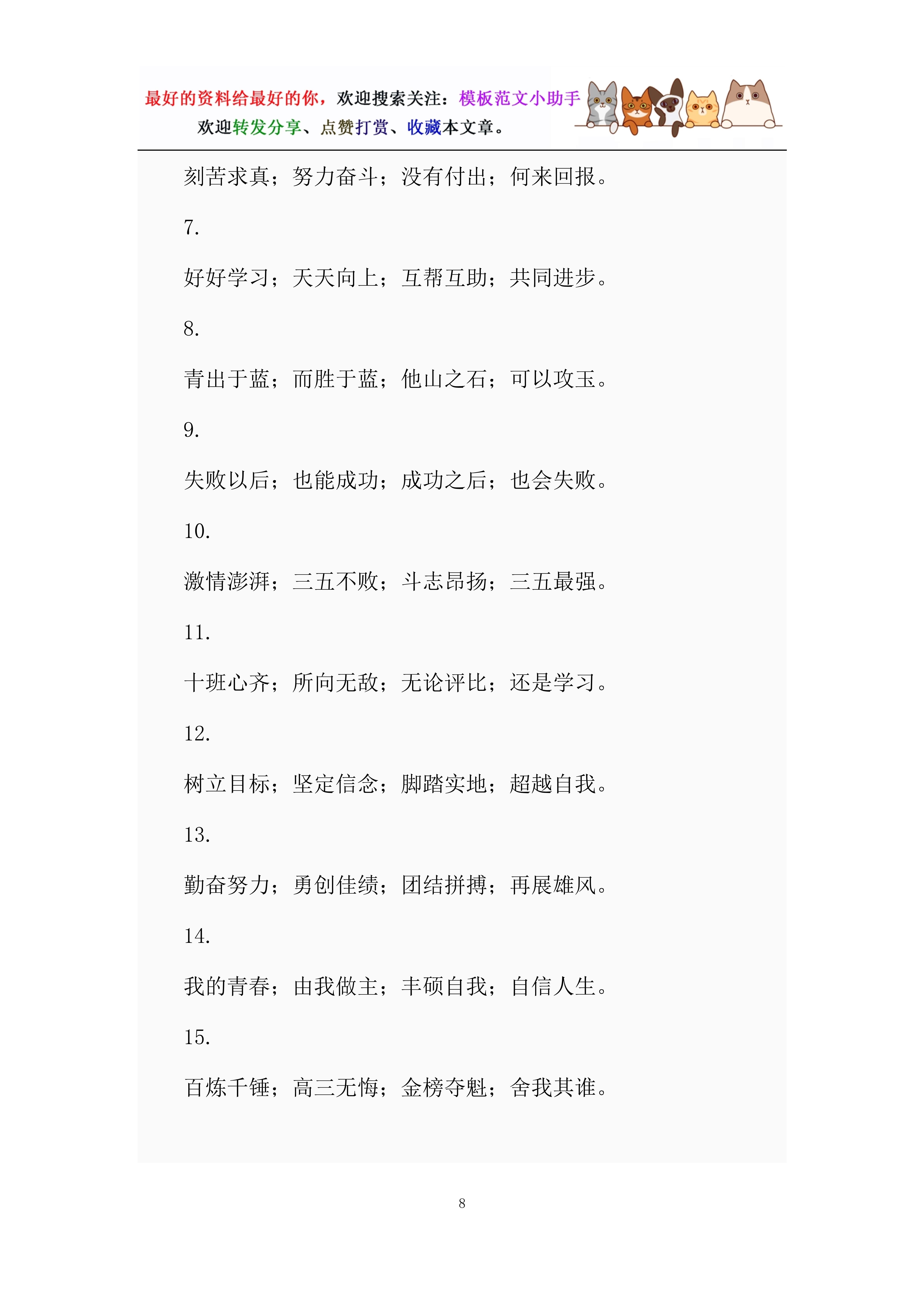 15.奋发图强,笃信好学,雨露之恩,涌泉相报!——高二(八)班