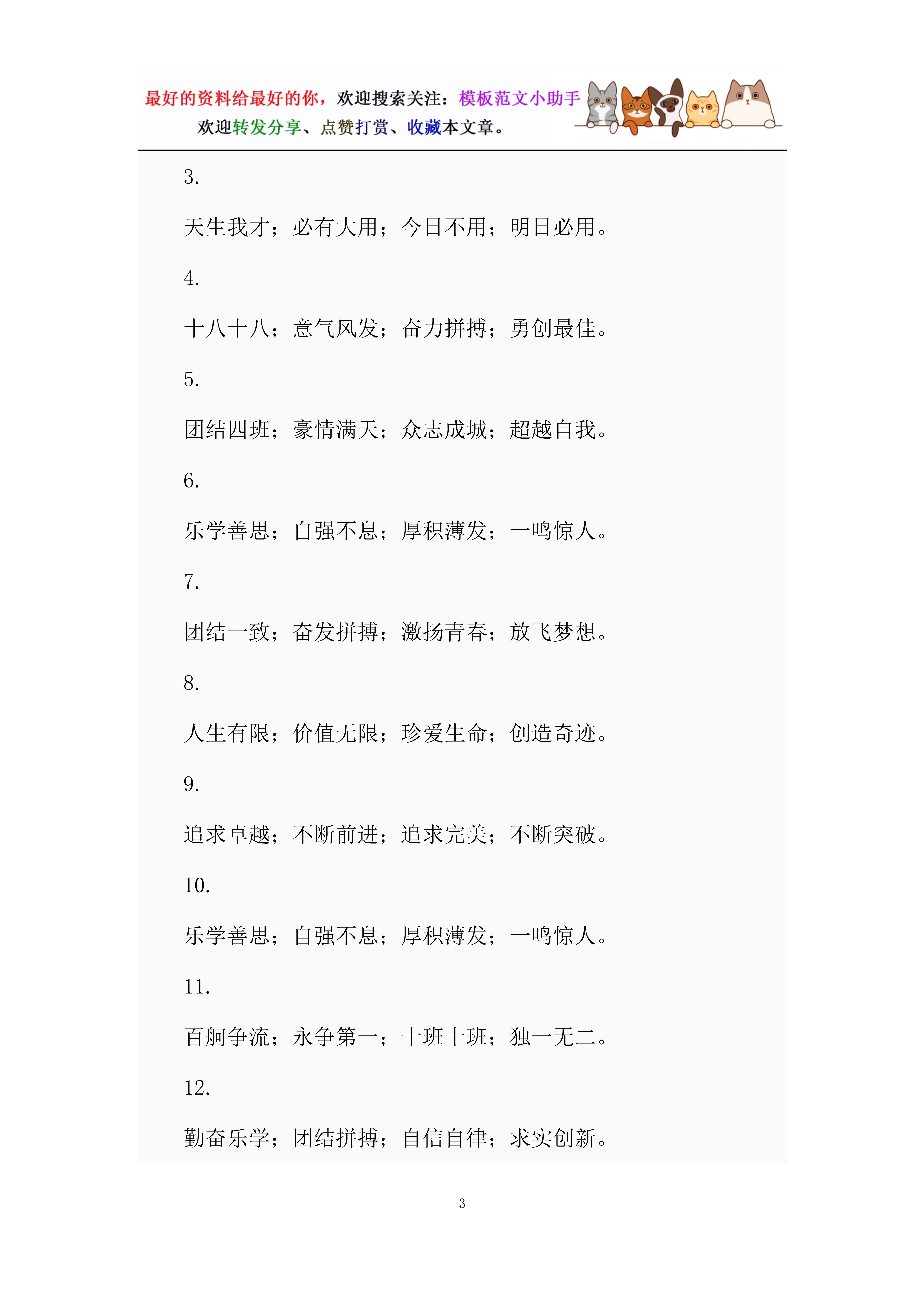 11.不卑不亢,团结向上,奋勇拼搏,超越自我!——高一(三)班