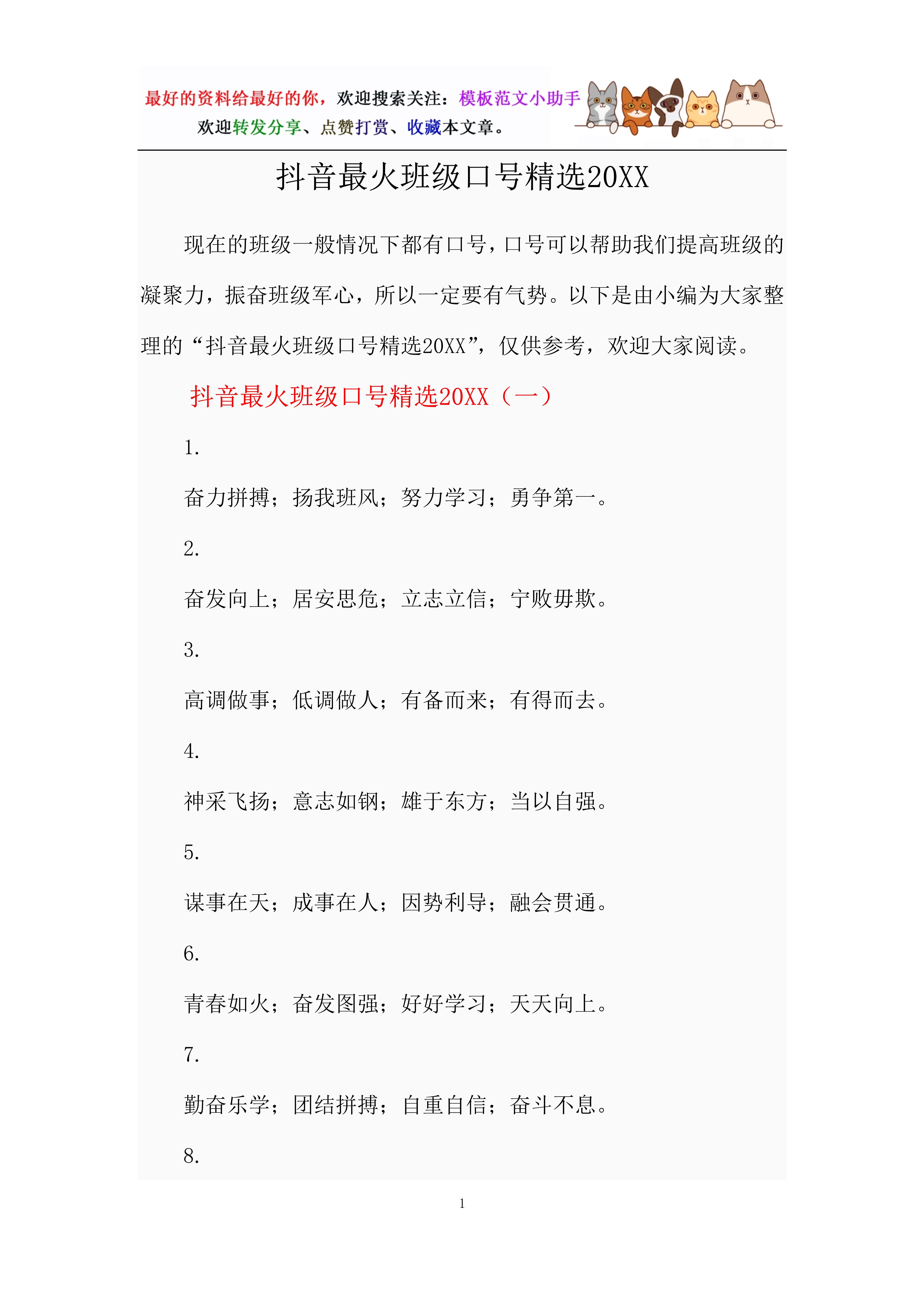 班级口号 小众高级?口号:1、积极进步,奋⼒拼搏2、锻炼意志,强⾝健体3、秀你⾃信,展现⾃我4、勇夺三军,所向披靡5、英明神武,勇冠江⼭6、史上最强,...口号:1、积极进步,奋⼒...