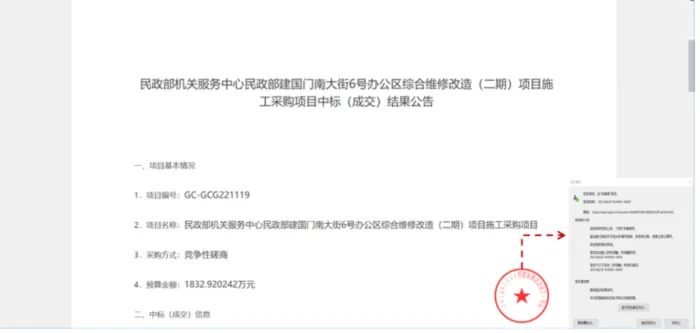 e签宝电子签章服务支持接入更多招投标平台内的签署场景,如中标公告单方盖章,在线发布合规有效的公告文件。平台用户可及时查阅中标情况,下载公告文件验证签章有效性。