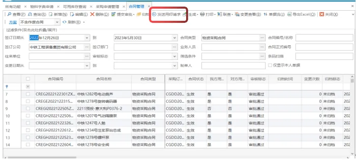 审批完成业务人员点击发起用印申请即可发起电子合同