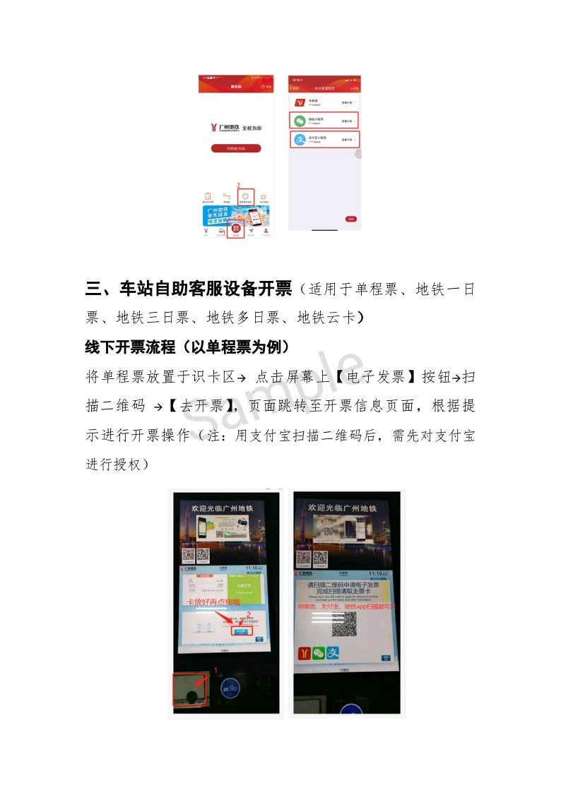 广州地铁区块链电子发票系统上线试运行后,乘客可以通过部分车站自助客服中心或广州地铁官方APP使用该功能。目前,车站自助客服中心仅支持单程票、地铁一日票、地铁三日票、地铁多日票、地铁云卡开具区块链电子发票。羊城通、储值票、全国一卡通等实体卡则需先在自助客服中心进行绑卡后,方可用广州地铁APP开具发票。使用广州地铁APP、微信、支付宝等线上乘车码的乘客则可直接通过广州地铁APP开具所需发票。