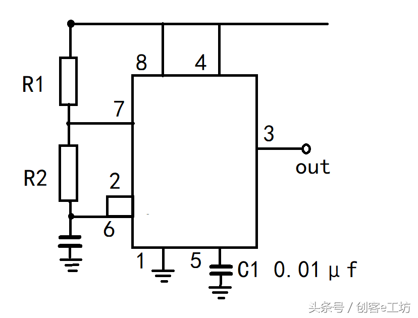 在做DIY电子琴之前,我们先来了解一下NE555多谐振荡器,我们来看看原理图,