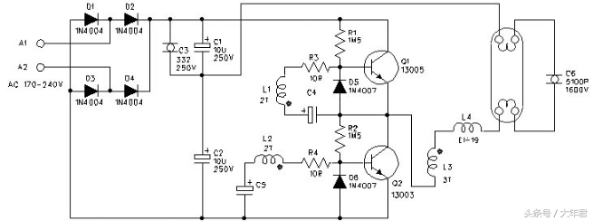 如下图是电子镇流器详细原理图