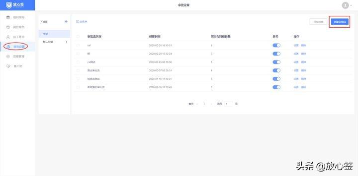放心签后台在创建管理员账号时,会默认把管理员作为员工添加至员工列表,同时还会将其添加至合同发起白名单和接收白名单。