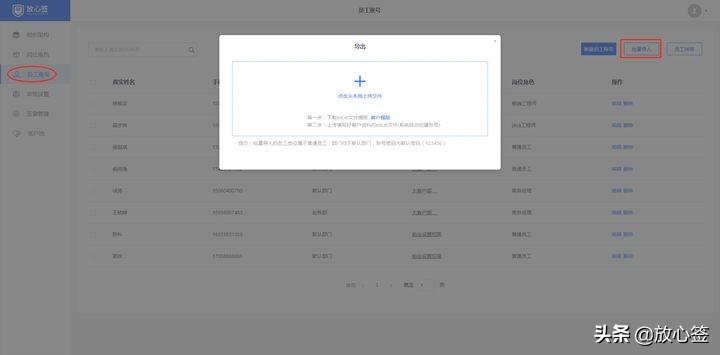 批量员工账号创建说明:批量创建员工账号时,上传的excel文件资料应符合客户模板格式,否则会严重影响系统识别率。