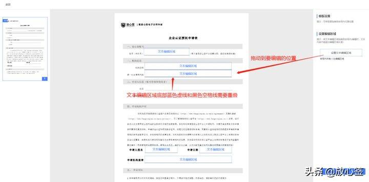 ①首先,上传的模板文件中,需要把可编辑区域预留可操作的空间。