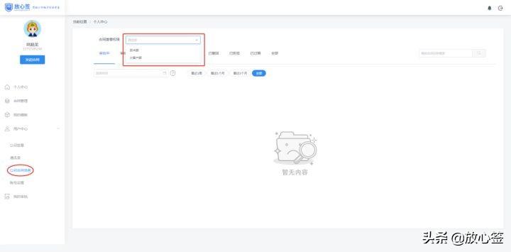 每一个新创建的员工账号无查看公司合同的权限,如需要查看,则需管理员赋予其查看公司合同的权限。控制台设置完成后,被授权的账号可登录专业版签署系统,进入用户中心下的公司合同信息模块,选择要查看的部门进行部门合同查看。