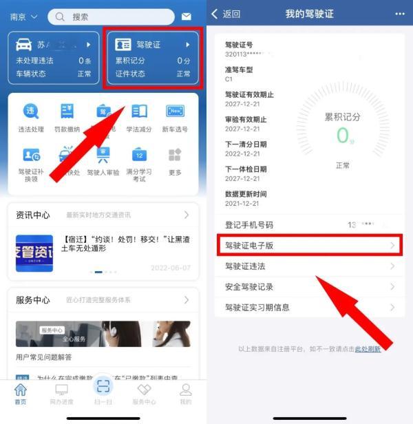 2.登录后,可以在【驾驶证】或【业务中心】中点击【驾驶证电子版】申领本人电子驾驶证。