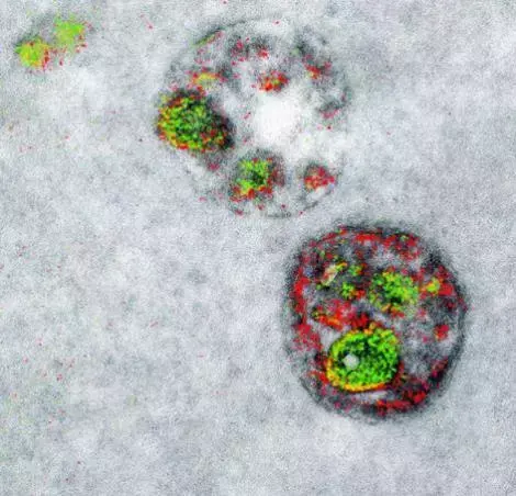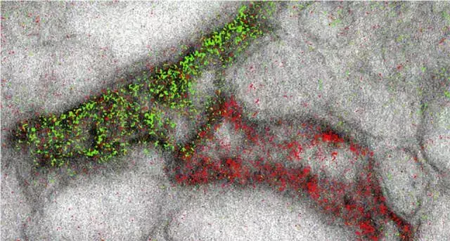 这个让电子显微镜呈现新色彩的技术是怎样实现的呢?与普通的电子显微镜成像一样,研究人员首先利用重金属(如铅)预处理样品,形成样品的基本层(灰度层);之后选取不同种类的镧系金属处理样品,按顺序为其“着色”。之所以选取镧系金属,是因为相较于其他金属而言,镧系金属更“龟毛”、更“挑剔”,并且只钟情于特定的分子类型。不同的稀土金属种类会锁定不同的目标物,电子束与附着在超微物体上的金属相互作用后,会呈现出不同的颜色。