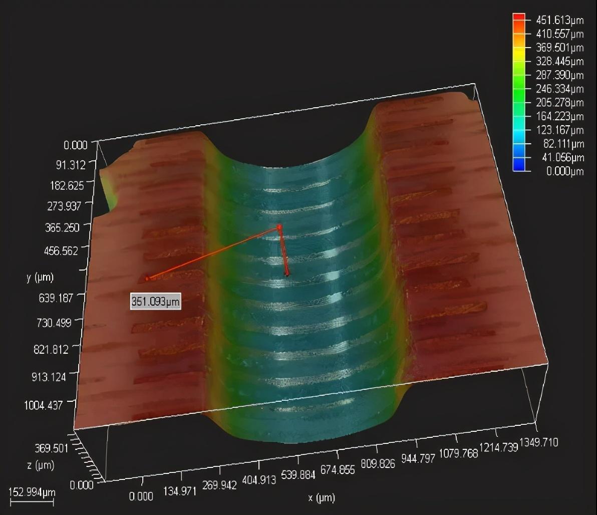 使用自有转换的角度进行观察,可无需进行繁琐的样品位置调整,即可轻松观察到印刷线路板侧边钻孔的形貌,通过转动支架角度,寻找检测的合适视角。使用DVM6的“3D建模”以及“3D测量功能”,可以快速获取到钻孔的三维形貌,并且直接获取高度等三维数据。