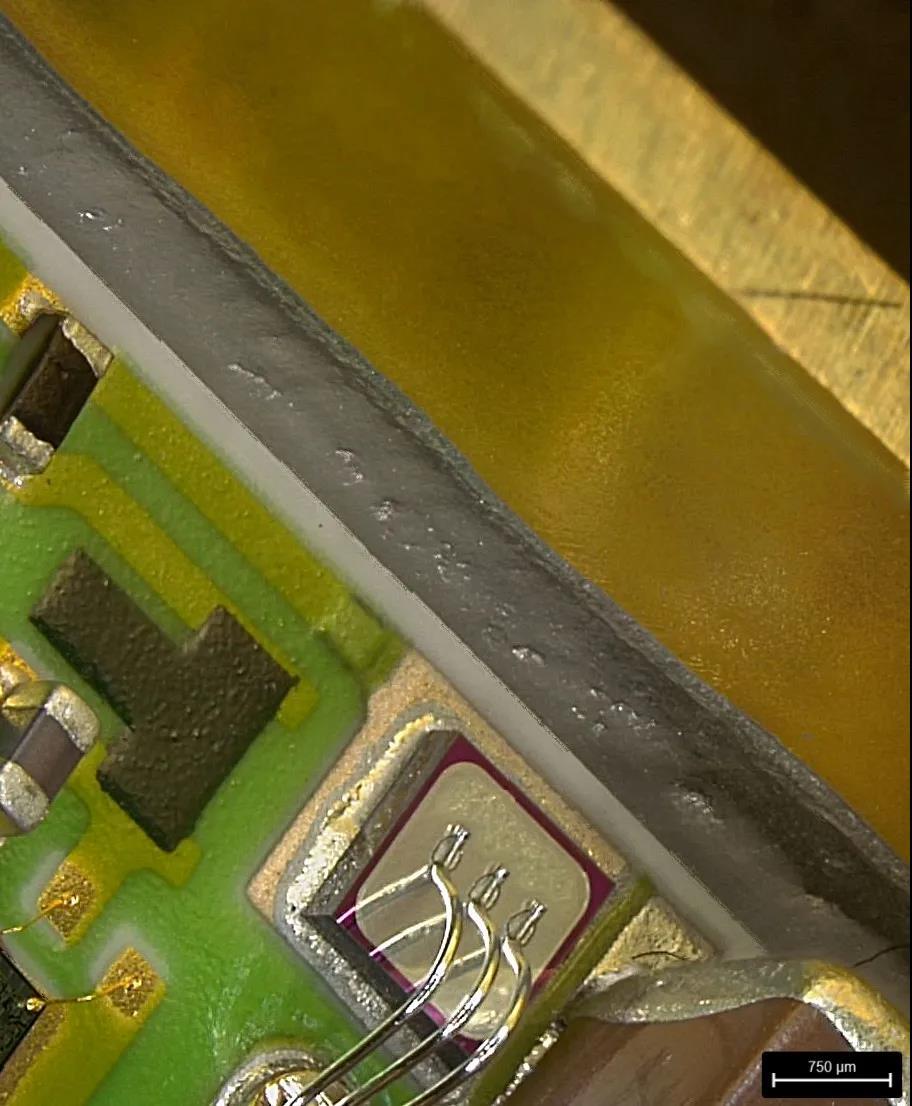 显微镜很难采用均匀的照明,获得与模具连接部分的导线的清晰图像。借助Leica DVM6内置的多种照明模式并使用匀光器柔化光线,用户可以通过均匀分布的照明拍摄引导线的清晰图像。不但能通过图片确保它们接触良好。同时使用Leica DVM6的“景深合成功能”,可克服在高倍率下景深不够的限制,拥有高倍率下导线的完全对焦图像。因此可避免不良产品的出现,避免过短的导线在通电时由于热膨胀而导致断开,或者避免过长的导线在移动时产生不需要的接触。