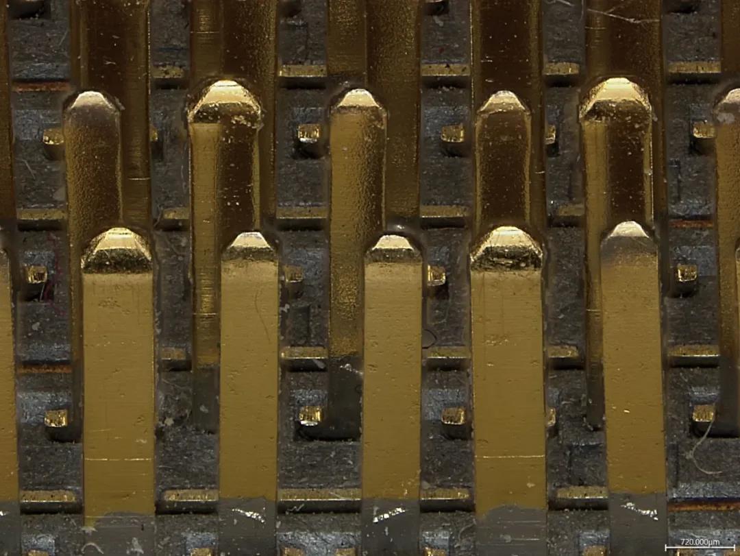 通过景深叠加功能,让针脚根根清晰可见,在高倍数下既能看清侧壁是否有划痕和断裂,也能大视野看清所有连接器里的pin针。Leica DVM6