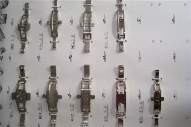 目前市面上流行的表扣主要有如下几种:折叠扣、针扣、皮带按扣、暗扣、折叠安全扣、钩扣、蝴蝶扣。