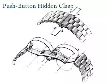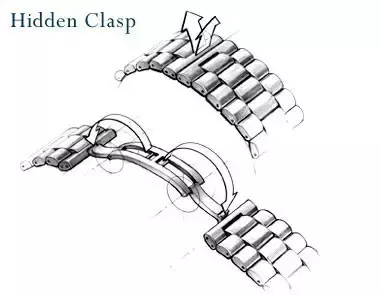 珠宝扣顾名思义,就是可以让手表表带看起来想珠宝项链一样的表带,这一款非常有特色的表扣,主要用在女士手表比较多,主要特点是美观,便捷。