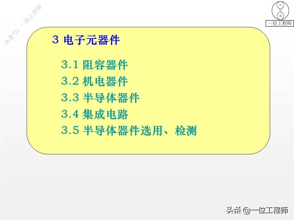 阻容器件、机电器件、半导体器件、集成电路、半导体器件选用、检测。