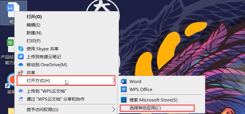 1.单击右键任一电子文档,在弹出的菜单中选择“打开方式-选择其他应用”命令。