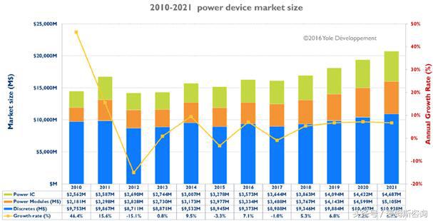 2010~2021年功率器件的市场规模