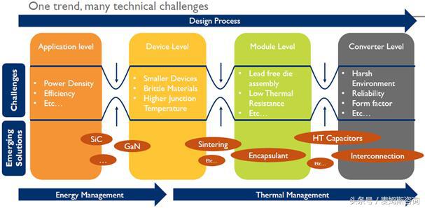 如今,完全不同的电力电子产业和LED产业正面临相似的挑战。绿色能源要求下的低二氧化碳(CO2)排放要求,不断推动这些产业开发更高效、尺寸更小的解决方案。在器件层面,成本压力和性能需求推动设计商不断追求更小、更薄且功率密度更高的芯片。这样的功率密度目标对电力电子和LED产业都提出了热管理要求,推动了新材料的开发。