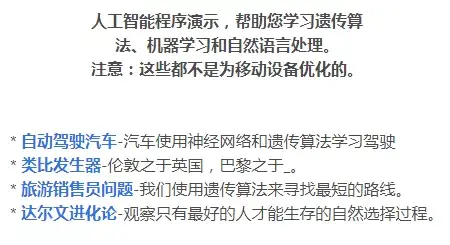目前大多数的电脑程序都是由人类完成编译的,但现在AI也可以自己学习编译,并直接展示出相应的成果,演示程序包括了「汽车自动驾驶」、「语言类比」、「商品销售回答」、「进化选择」这四个项目,并且还有相应的代码可以查看,能帮助大家学习一些编程方面的知识。