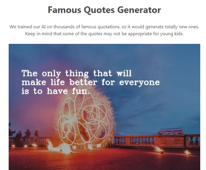 当我们在阐述一些道理或者理论时,引用名人名言可以让自己说的话更具有说服力,而这个AI本身学习了上千条名言警句,可以仿照模式自动生成出新的名言,不过由于系统本身的设定,生成出的名言只有英文版本。