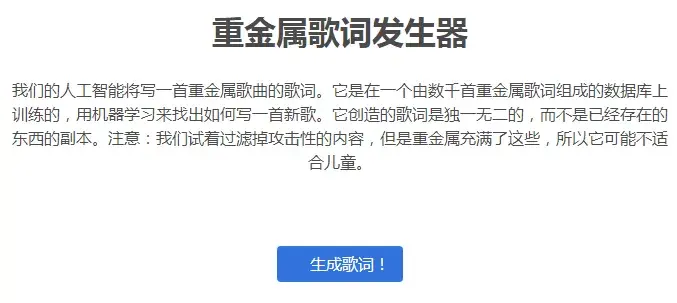 重金属歌词生成器同样是基于GPT-2语言模型,但这个AI的任务却是用来生成重金属风格音乐的歌词。