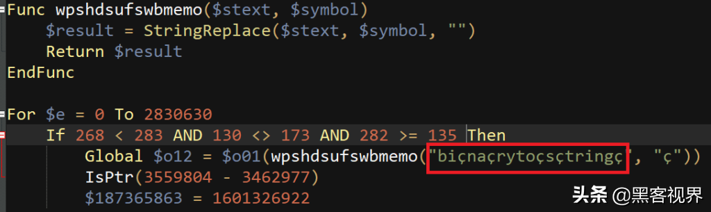 更改字符顺序;将字符串更改为十六进制;与一些常数进行异或运算;更改字符串顺序;嵌入大量非ASCII字符。图6.更改字符串顺序