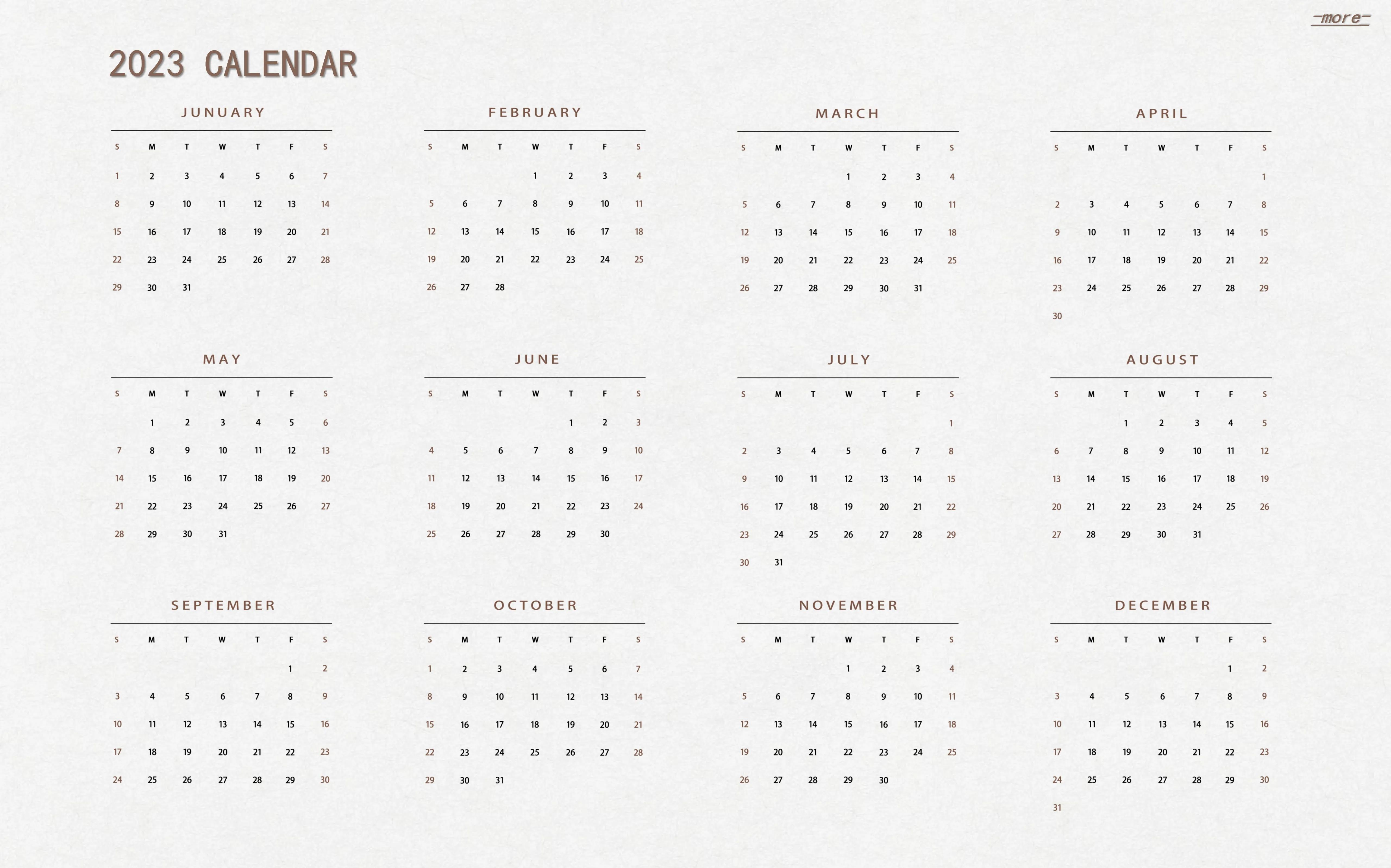 接下来每月的模板都是重复的了,为了减少视觉疲劳,每个月都更换了配色。