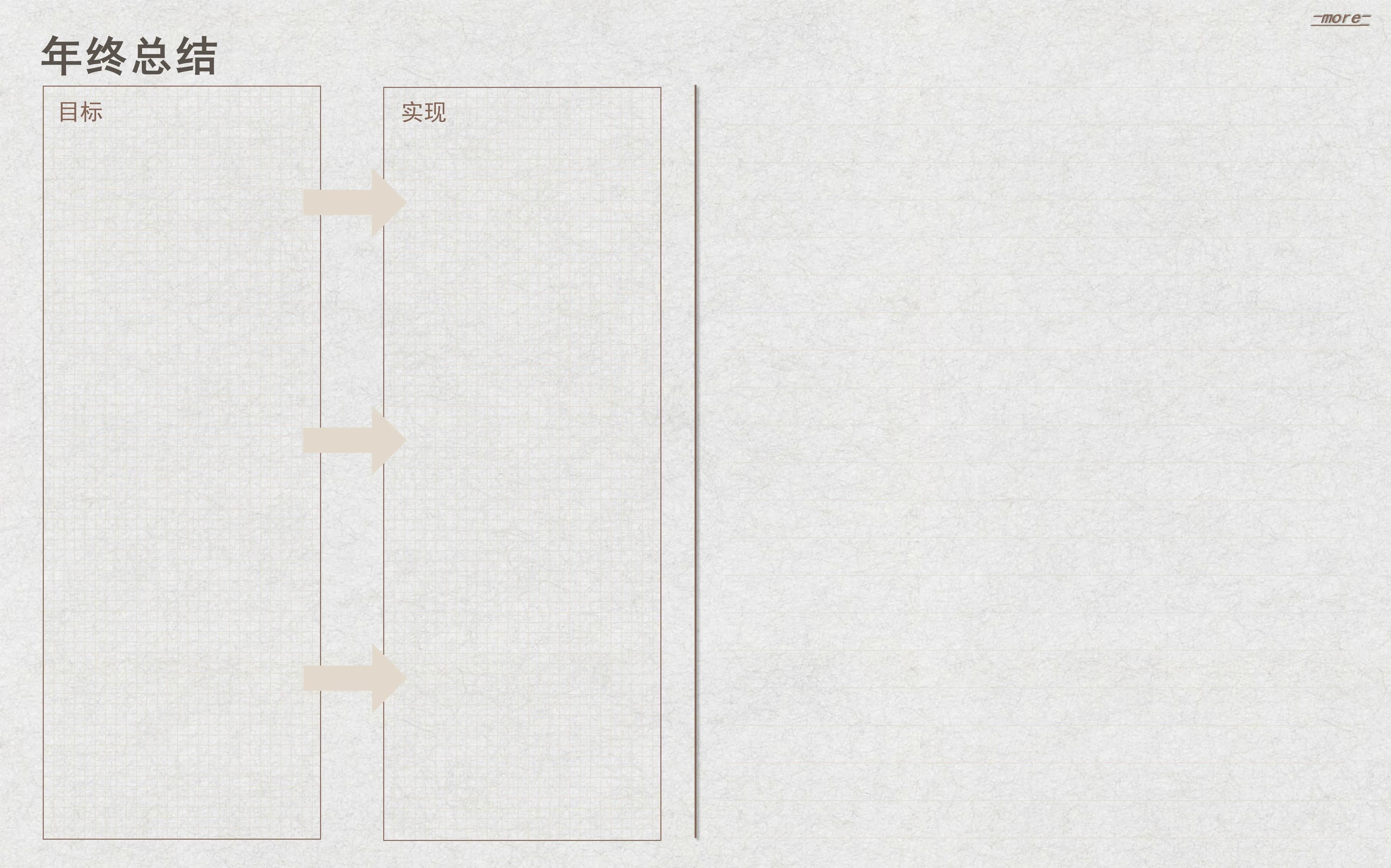 年终总结也是两个部分,左边可以先写自己年初立下的flag,年末对比复盘一下这些目标的完成情况,比如我立一个要读十本书的目标,然后等一年过去,再回顾一下到底读了几本。右边是横格纹(图片压缩了可能不太清晰),可以自己写一个年终总结。
