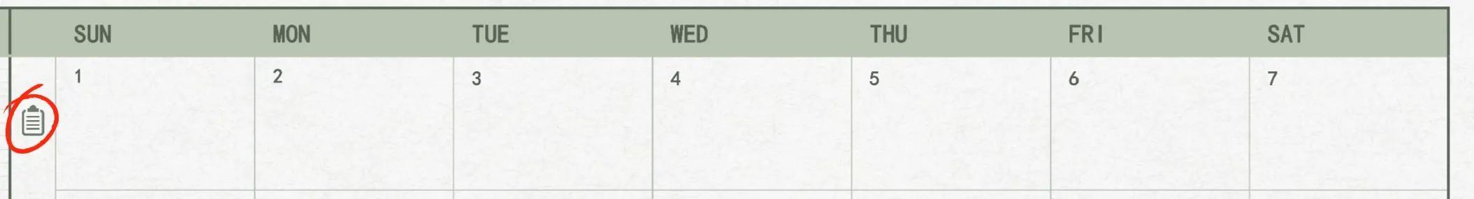 在日历的每一行前面都有一个小小的图标,可以跳转到对应的周计划页。