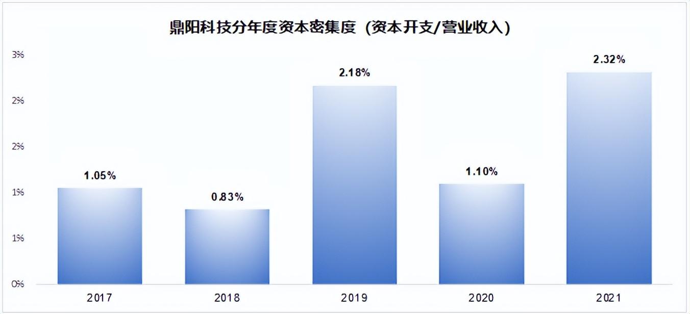 以鼎阳科技为例,从2017年以来,收入翻了两倍,但是资本开支一直都很少,每年的资本开支只占到营业收入的2%左右,近乎忽略不计。
