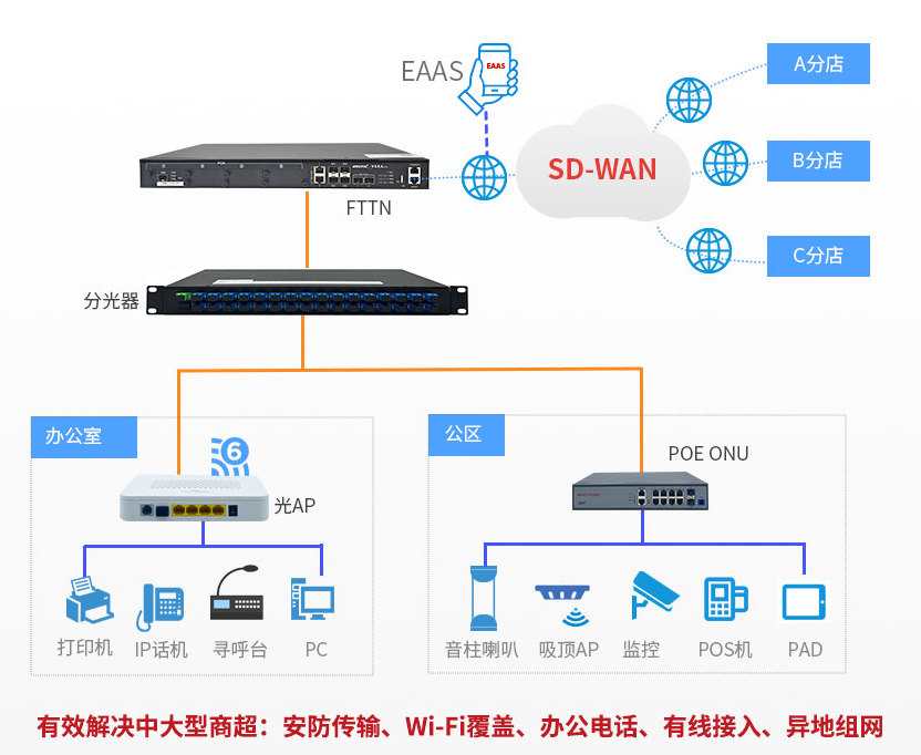 随着科技的不断进步,商场和超市作为人们日常生活中不可或缺的一部分,其运营效率和顾客体验的提升已成为业界关注的焦点。传统的有线网络已经逐渐无法满足现代商场超市对于数据传输速度、稳定性以及扩展性的需求。因此,采用全光网络解决方案成为了提升商场超市竞争力的重要手段。本文将详细介绍全光方案在商场超市中的应用,包括网络需求分析、全光方案的优势与特点、整体网络拓扑图设计以及具体应用场景。