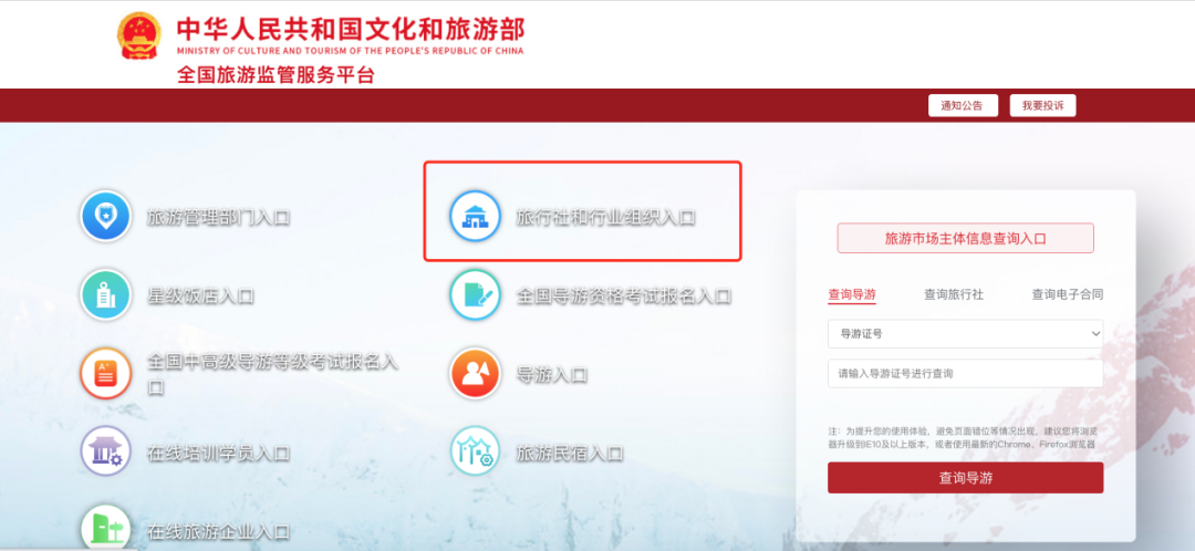 渠道三:全国旅游监管服务平台