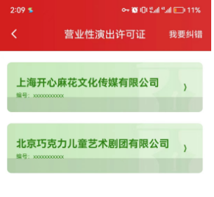 点击“营业性演出许可证”“娱乐经营许可证”“网络文化经营许可证”,申领、查看相应电子证照。