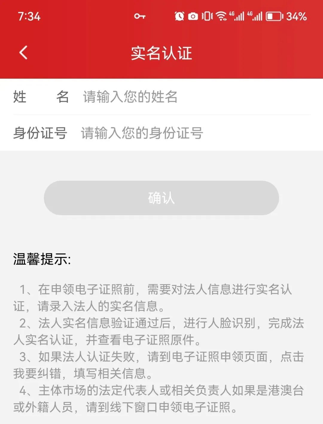 0 7 法人身份信息认证首次申领需要填写法人姓名和身份证号进行身份信息认证。